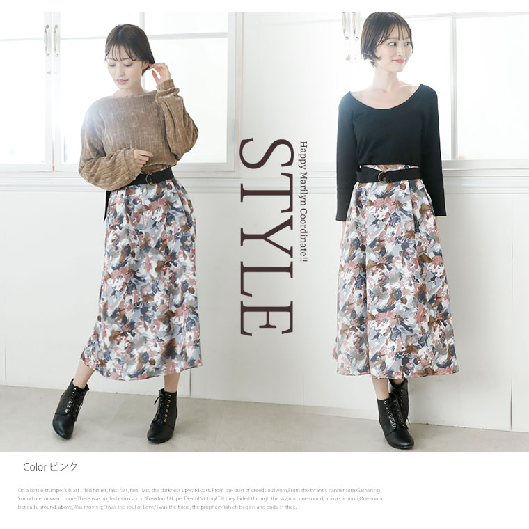 ウエストベルト付!大人美人な花柄スカート