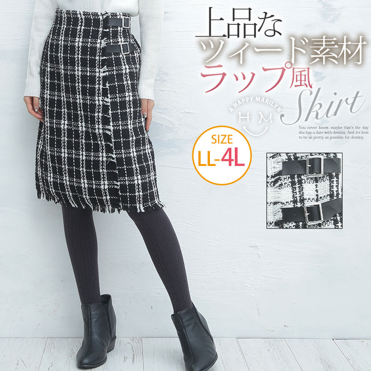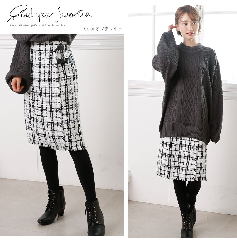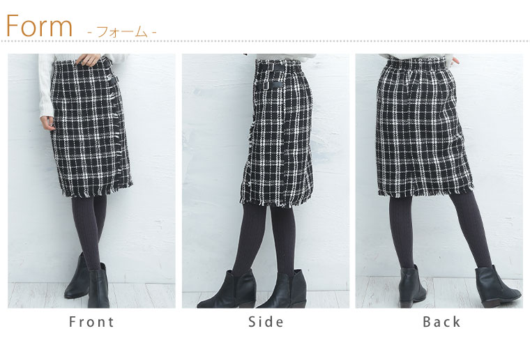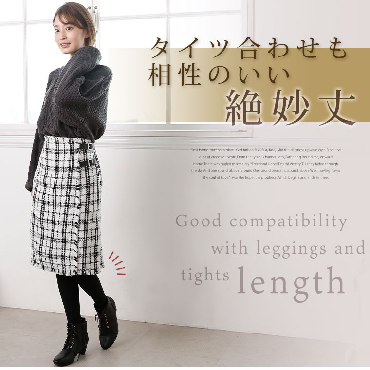 ツィード素材の絶妙丈 タイトスカート