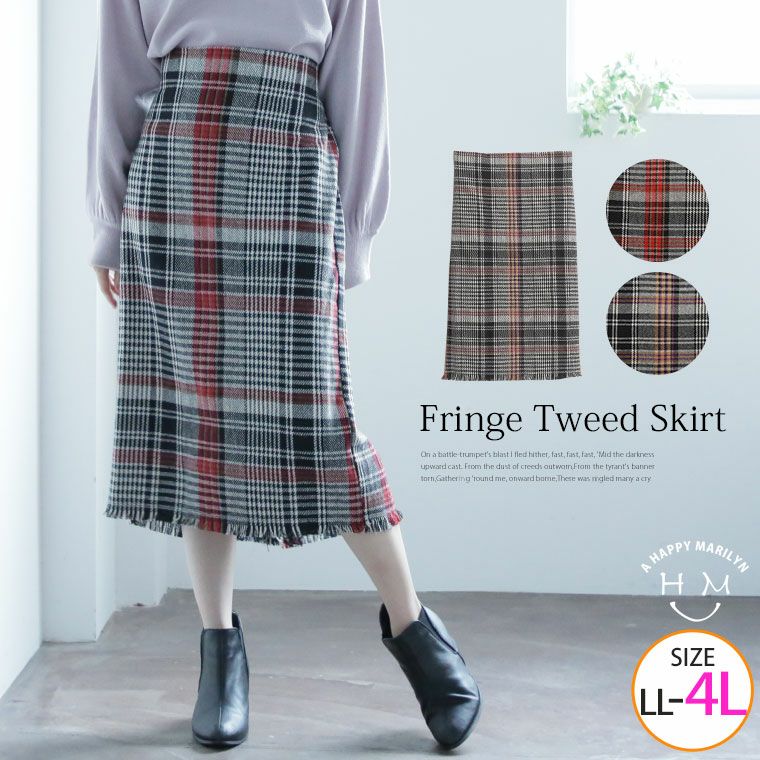 チェックとフリンジが大人な装いのボトムス
