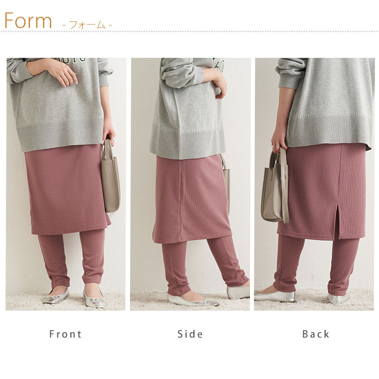 レギンスの伸縮性があんまりない気がしましたが、スカートは着やすくて可愛いです。 カジュアルでもキレイめでもいけそうです。