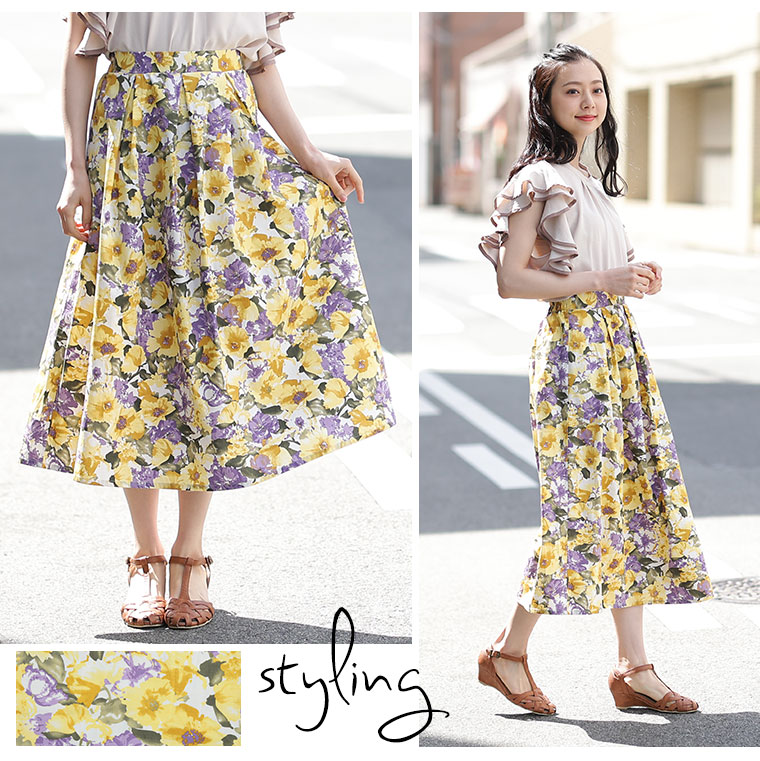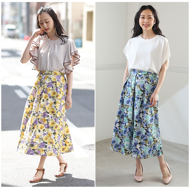 4. 大きいサイズ Rin 花柄 フレアー レディ スカート