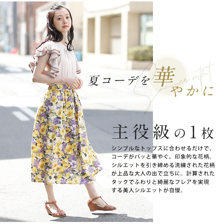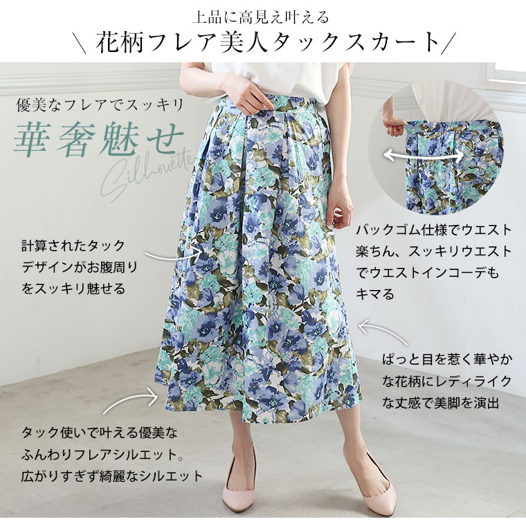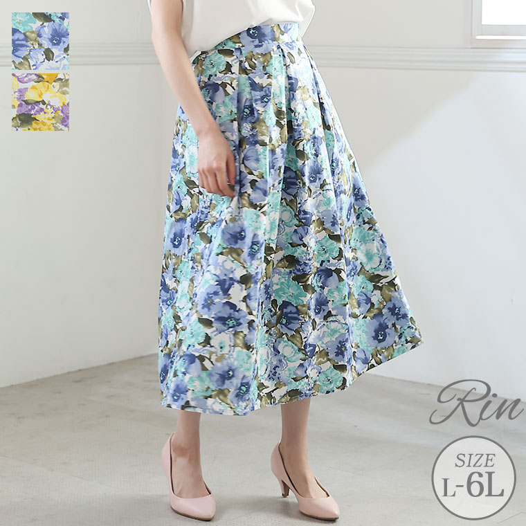 ボトムス LL 3L 4L 5L 6L 夏 夏物 夏服 夏用 ぽっちゃり ゆったり かわいい おしゃれ カジュアル ナチュラル リン 上品 華やか 高見え エレガント キレイめ Rin 花柄 フレアー レディ スカート