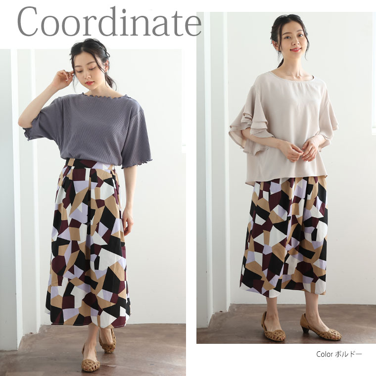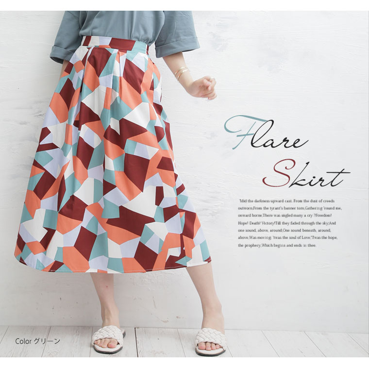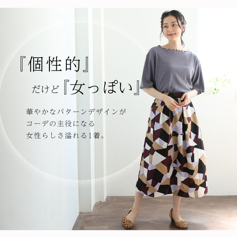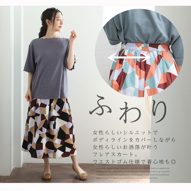 バックウエストゴムで着心地楽ちん シルエットがきれいなフレアデザイン