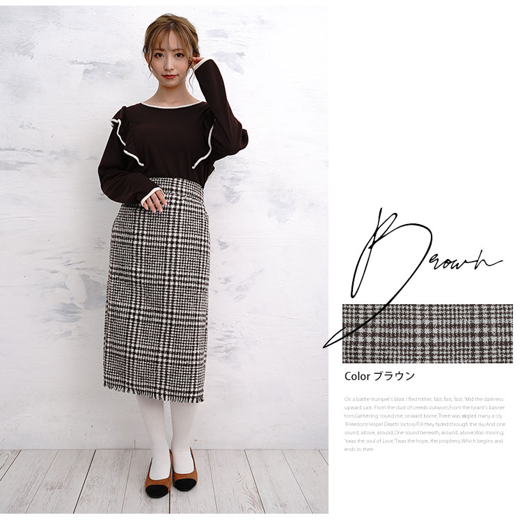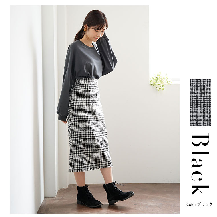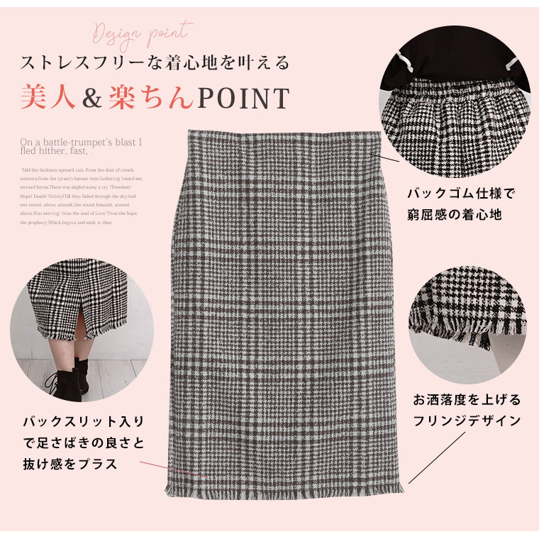 チェックで上品美脚に魅せるタイトスカート