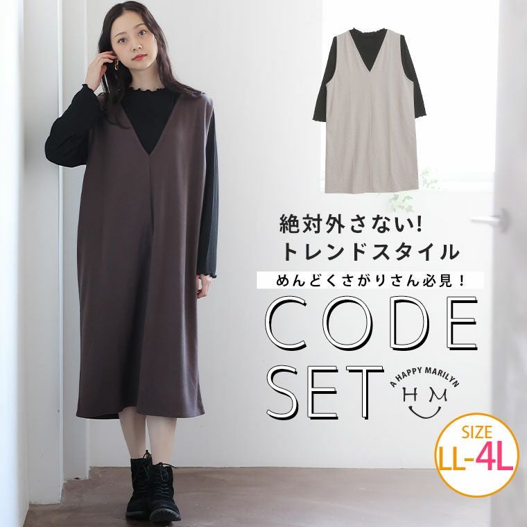 コーデ完成!リブトップス&ジャンスカ 2点セット