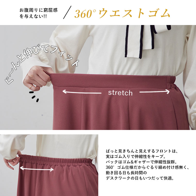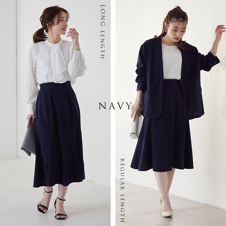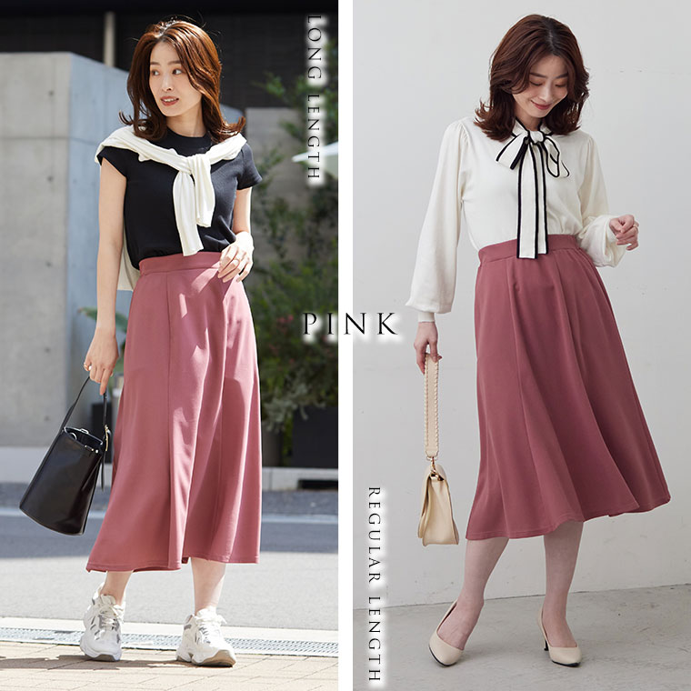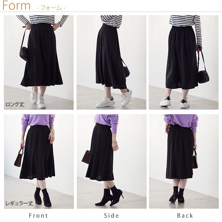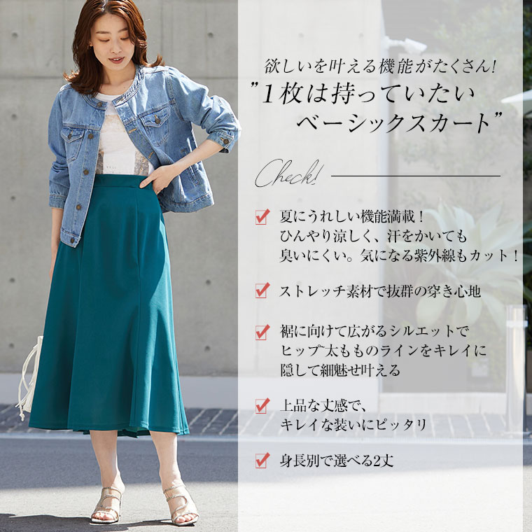 ひんやり涼しく汗かいても気にならないイージーケア選べる身長別細魅せフレアースカート