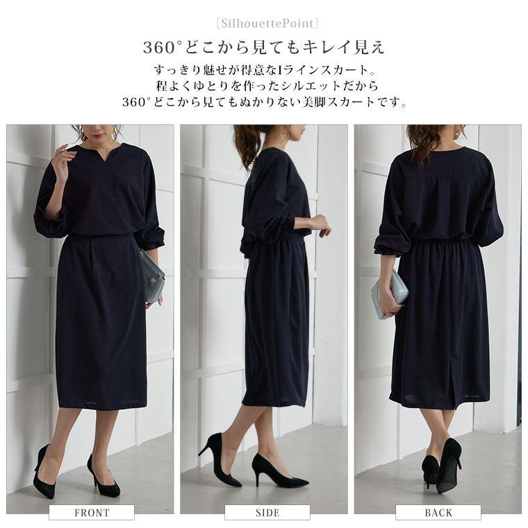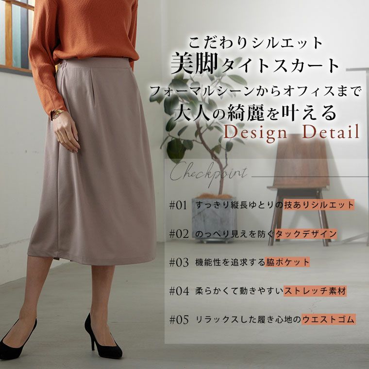 ミモレ丈とは、ふくらはぎの中間あたりのスカート丈のことで、マキシ丈よりも動きやすく、膝丈よりも落ち着いた大人の雰囲気を出せるのがポイントです。カジュアルになりすぎず、レディー要素を取り入れられるので、デートやちょっとしたお出かけにもこなれ感が出てぴったりのアイテムです。マリリンではミモレ丈スカートはウエストゴムのアイテムがほとんどなので、楽チンなのにオシャレになれるというポイントからかなりの人気アイテムとなっています。オールシーズン着用でき、どんなアイテムとも相性抜群!トレンドの靴下合わせのコーディネートはミモレ丈のスカートで合わせるのが一番こなれ感が出て、オシャレに見えること間違いなしです。トップスはインするのがスッキリみえるのでオススメです。柄トップスやショート丈のアイテムとも相性がよく、スカートに色物を合わせるのも一気に華やかになるので、カラーを取り入れるのが難しいと思っている方には是非試して頂きたいです。足首が見える丈間なので、細見えももちろんのことブーツやスニーカーと合わせても可愛いので、スカートが苦手な方でもミモレ丈スカートは楽チンで可愛くなるのでオススメしたいアイテムです。