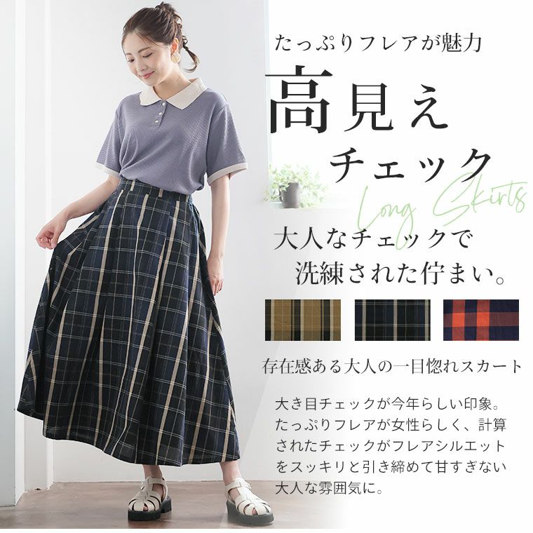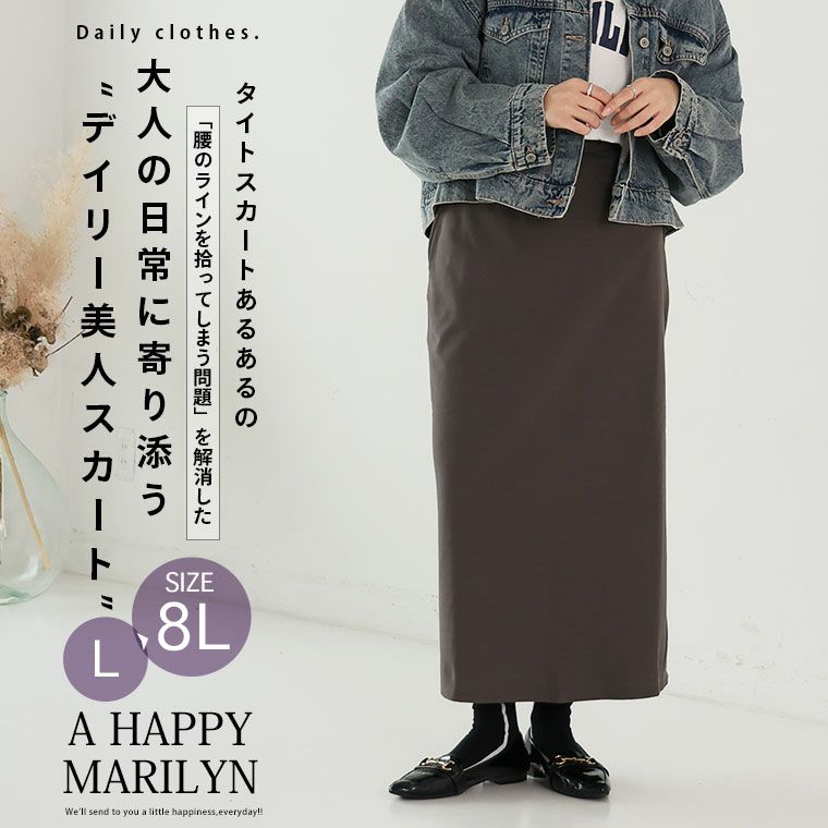 体型カバーもしたいけど、オシャレもしたいしカジュアルに見せたいけど大人っぽくも見えたい…というわがままを叶えてくれるのがロングスカートです。年中着られて、色んな種類があるのでアイテム選びも楽しいポイント!トレンドでもありますが、スカートをはくなら断然ロングがおすすめです。お尻や太ももなどを隠せるので下半身の体型をカバーすることができるのが特に嬉しいですよね。足首を出すとさらにスッキリした印象に見えるので、細魅え効果は抜群。またハイウエストで履けば、脚長効果もあります。マリリンではウエストゴムの商品が多いので、ラクチンなのにスッキリみえてさらに上品で女性らしくみえるのもロングスカートの特徴です。パンツスタイルでは作り出せない、女性の柔らかいニュアンスはロングスカートならではなので、1枚は必ず持っておきたいアイテムですね。マリリンではロングスカートの種類はかなり豊富にご用意しております。さらっと軽やかな印象にみえるプリーツスカートや、美シルエットでスッキリみえる印象のフレアスカート、定番のデニムスカート、すっきり細魅せも叶うタイトスカートなどまだまだたくさんあります。素材も豊富でコットン素材、リネン素材、デニム素材、ニット素材など、ほしいアイテムが必ず見つかります。柄物もあるので、トップスをシンプルなもので合わせるといつもと違った印象になりそれもまた楽しいです。季節別でいろいろな楽しみ方ができるのでロングスカートコーディネートを楽しんで!