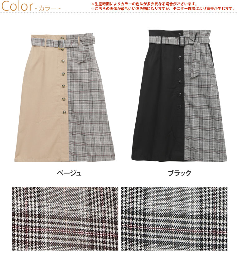 フロントボタンでスッキリ着こなす!!ベルト付きチェック柄スカート