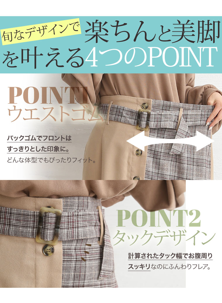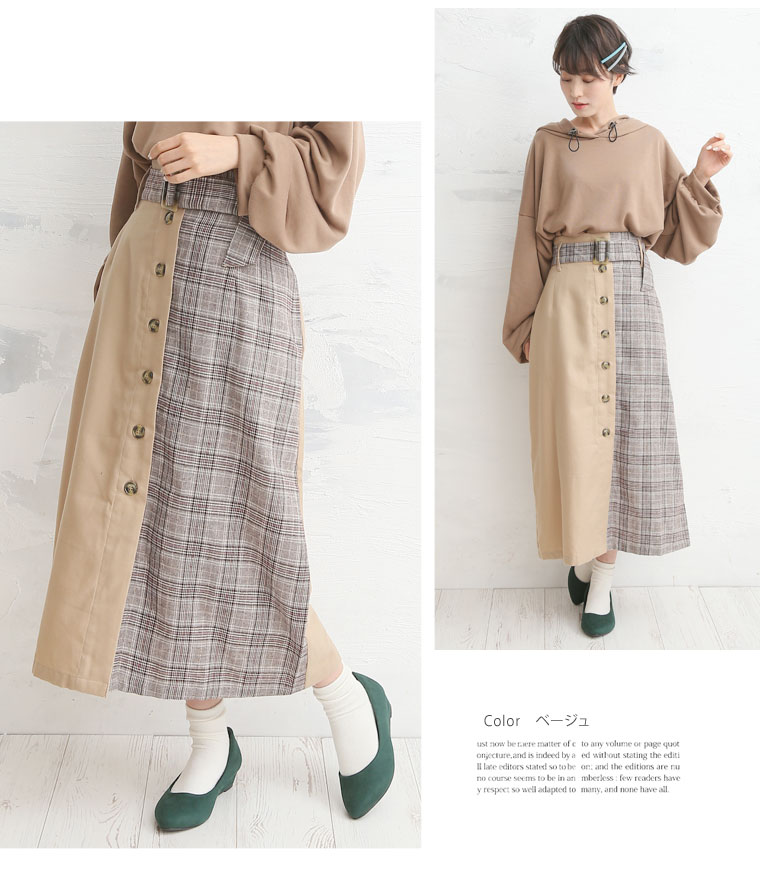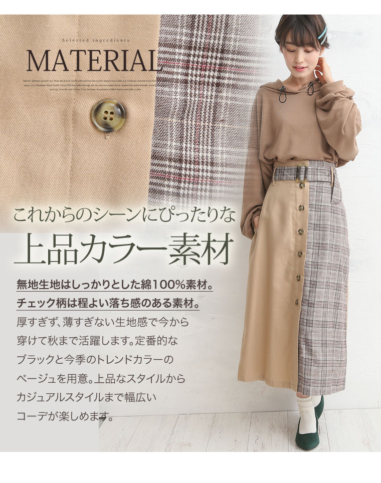 無地とチェックでバランスよくデザインされた大人の上品スカートが登場!!