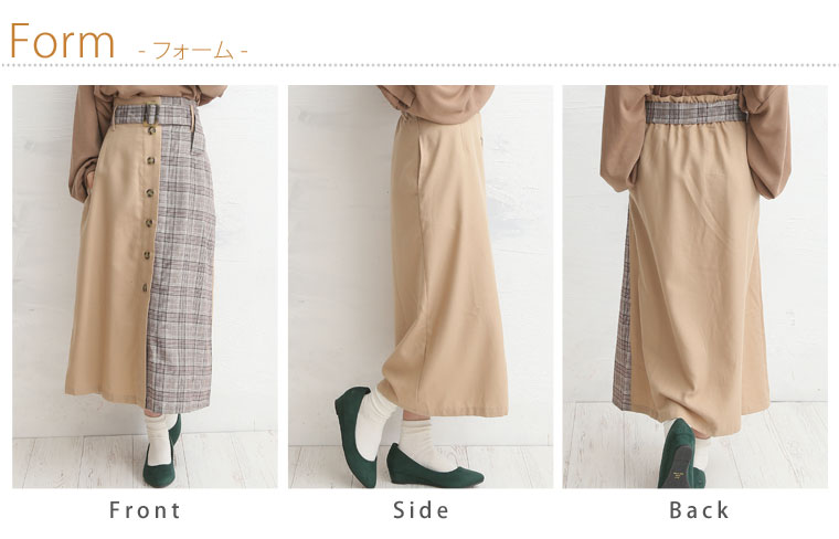 3. 大きいサイズ ベルト付き フロント 釦 ロング丈 切替スカート