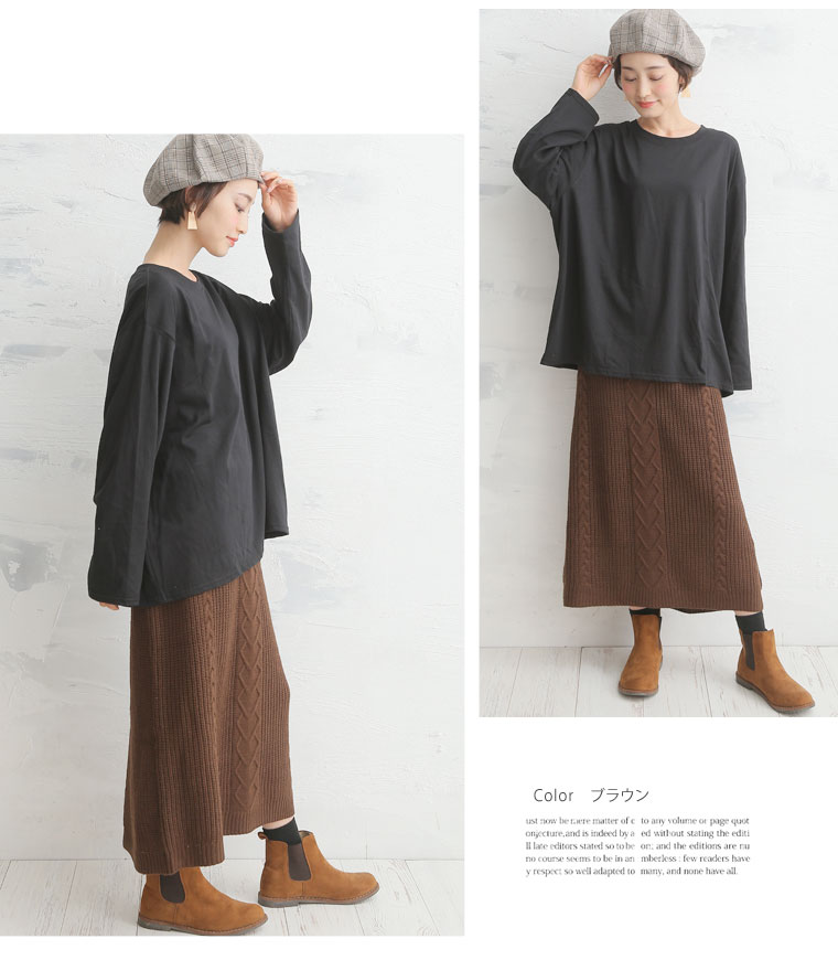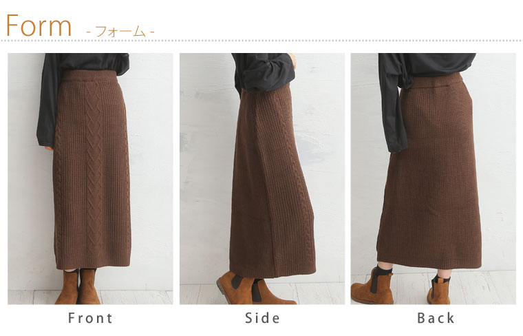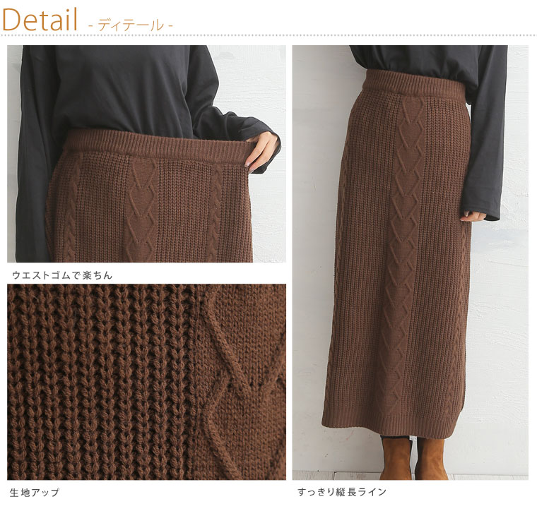 ほっこりとしたケーブル編みで季節感たっぷり♪すっきりナロースカート