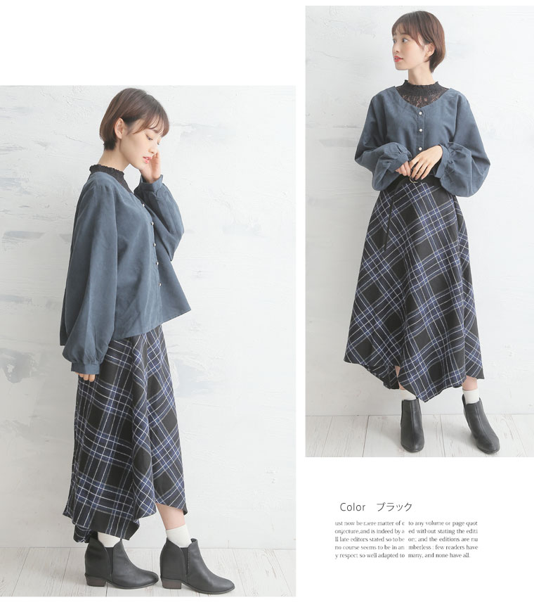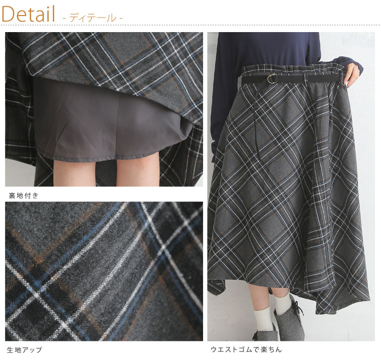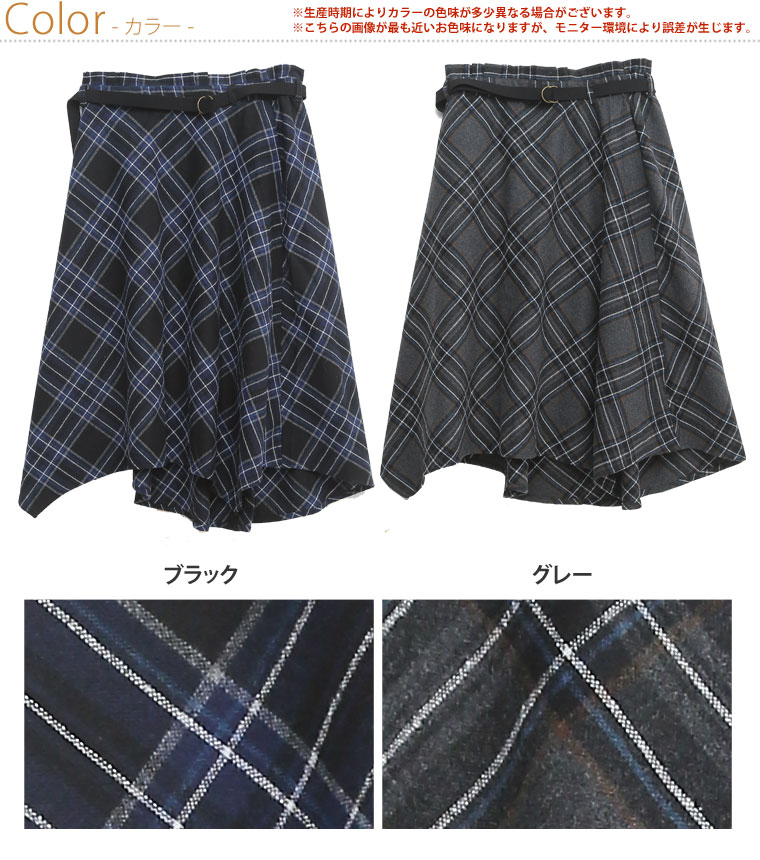 ひらりイレヘムシルエットで下半身カバー◎ベルト付きチェックスカート
