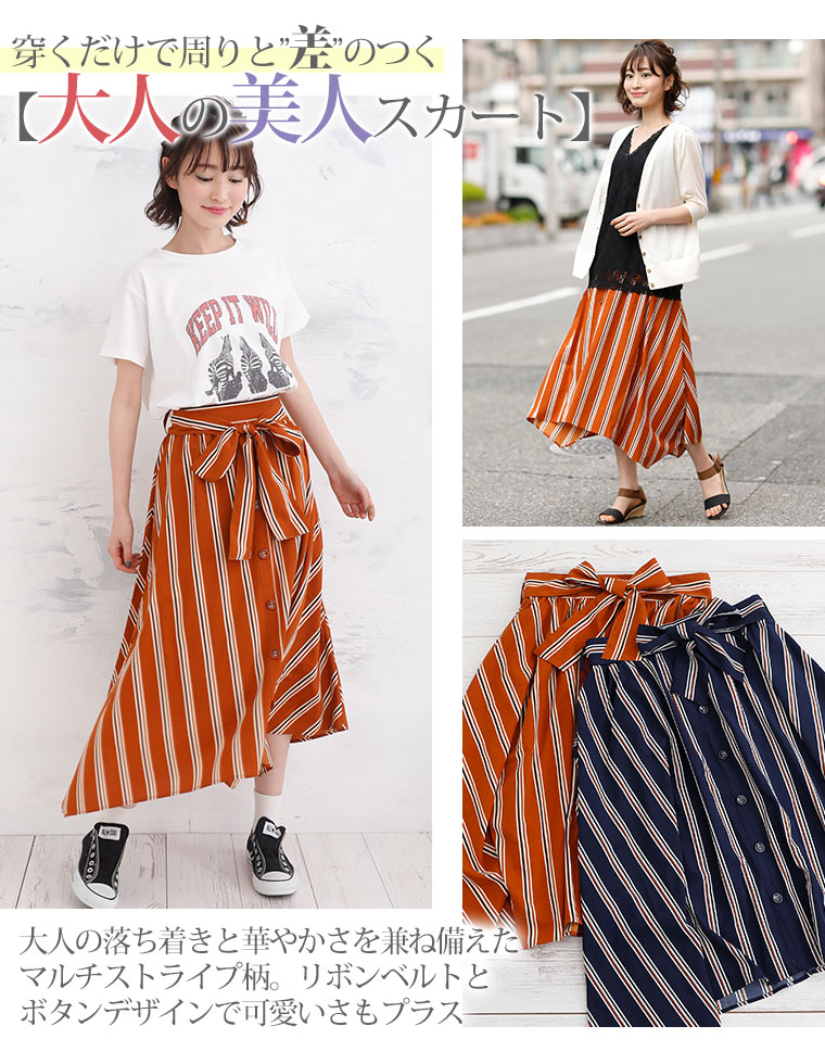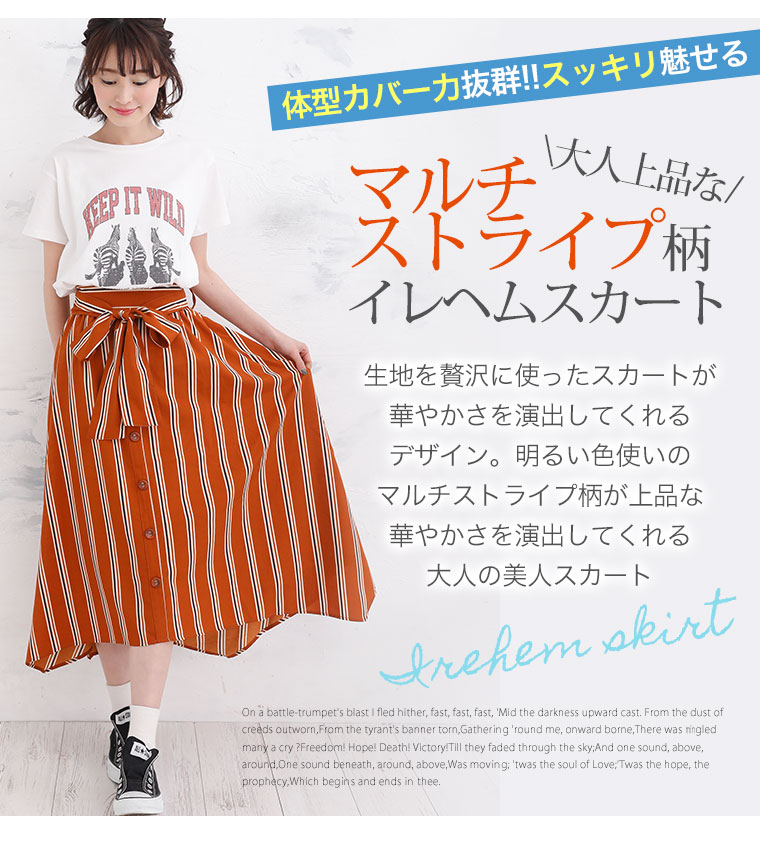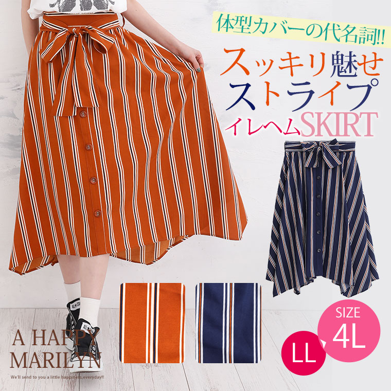 大きいサイズ マルチ ストライプ イレヘム スカート