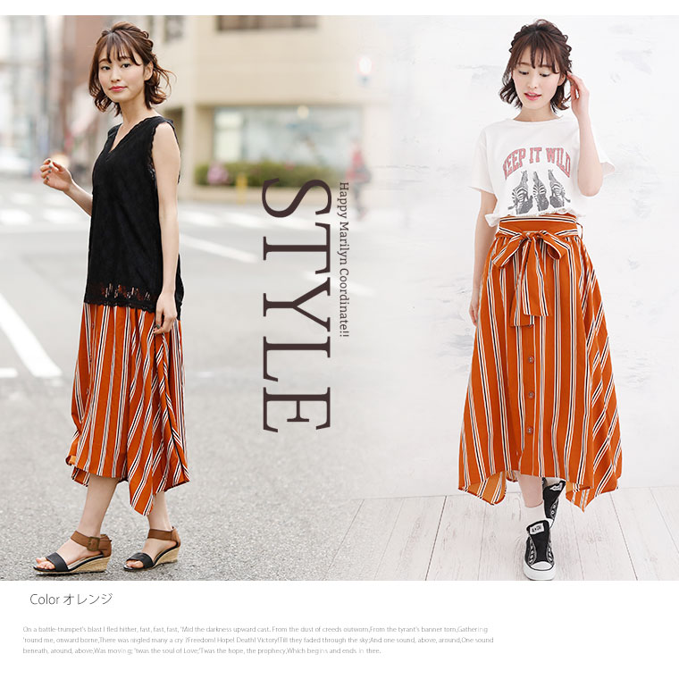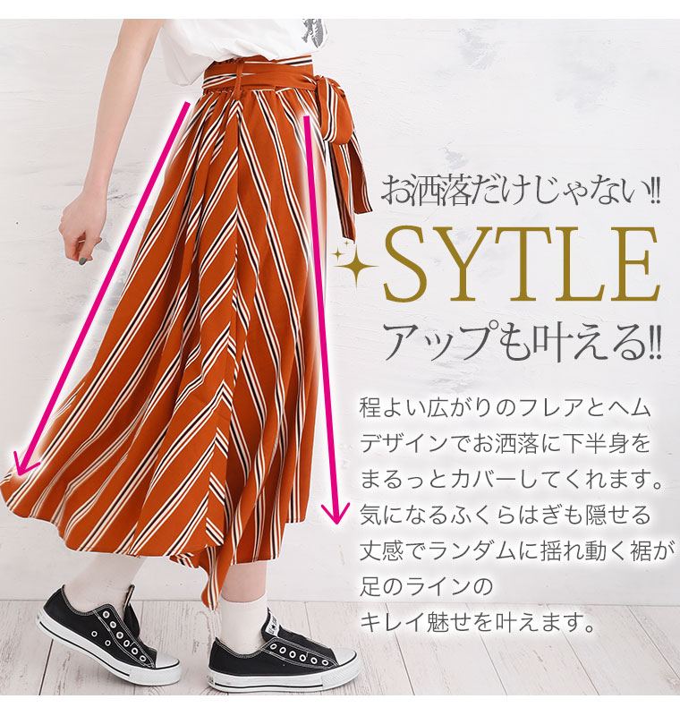 3. 大きいサイズ マルチ ストライプ イレヘム スカート