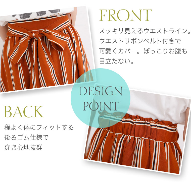 ウエストリボンがお腹周りをカバーしてくれて嬉しい。ウエストゴムでのびのび穿けました