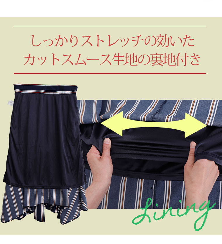 大人上品スッキリ魅せストライプ柄イレヘムスカート