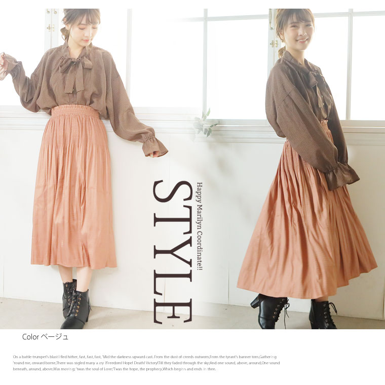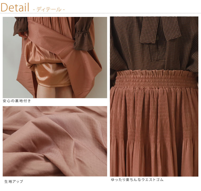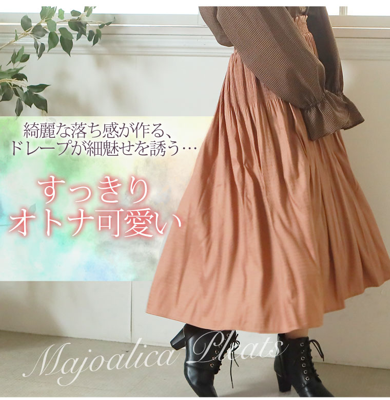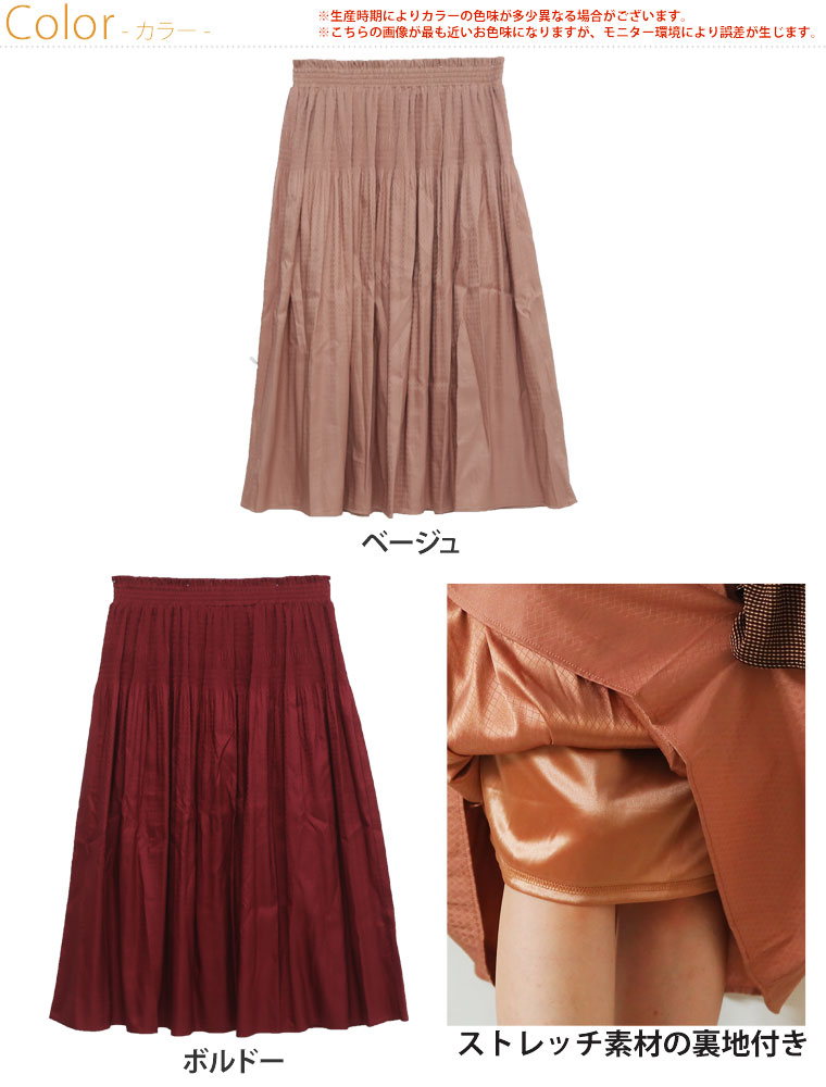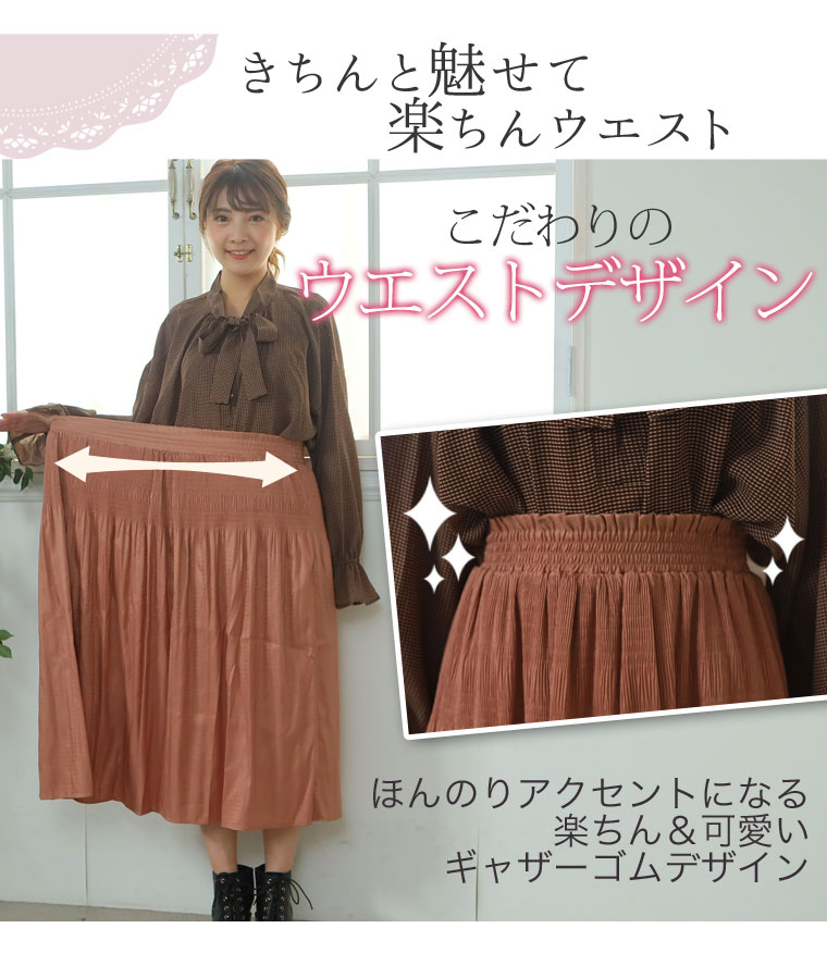 プリーツ加工でお腹周りをしっかりカバー♪ウエストゴムでゆったり楽ちん◎