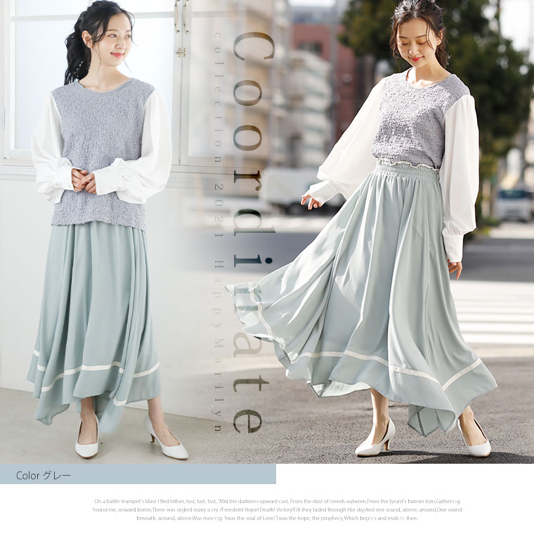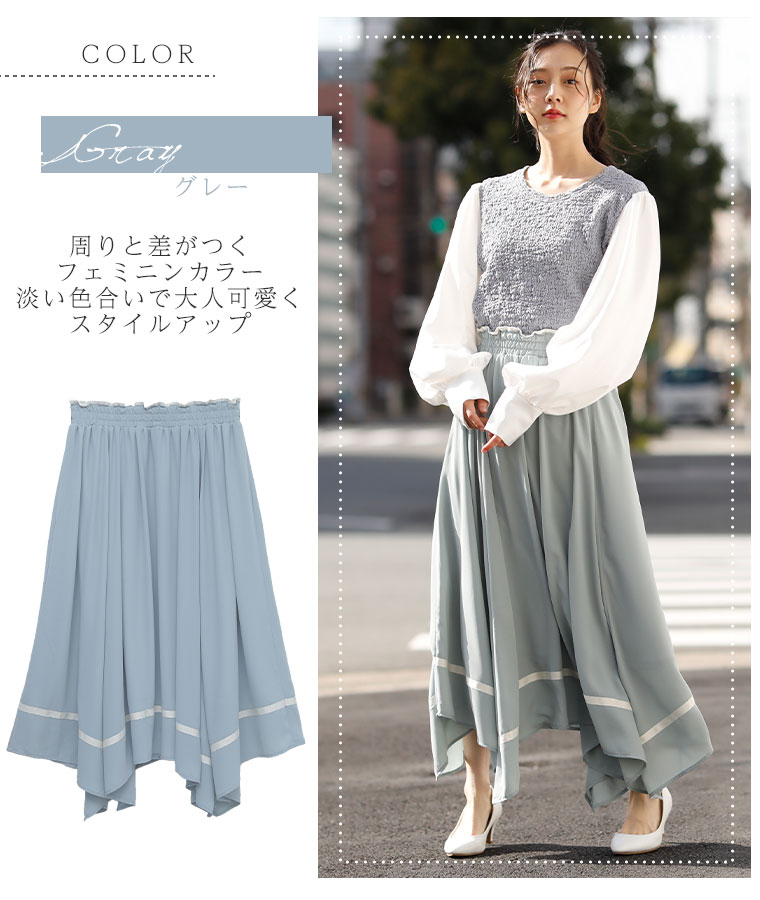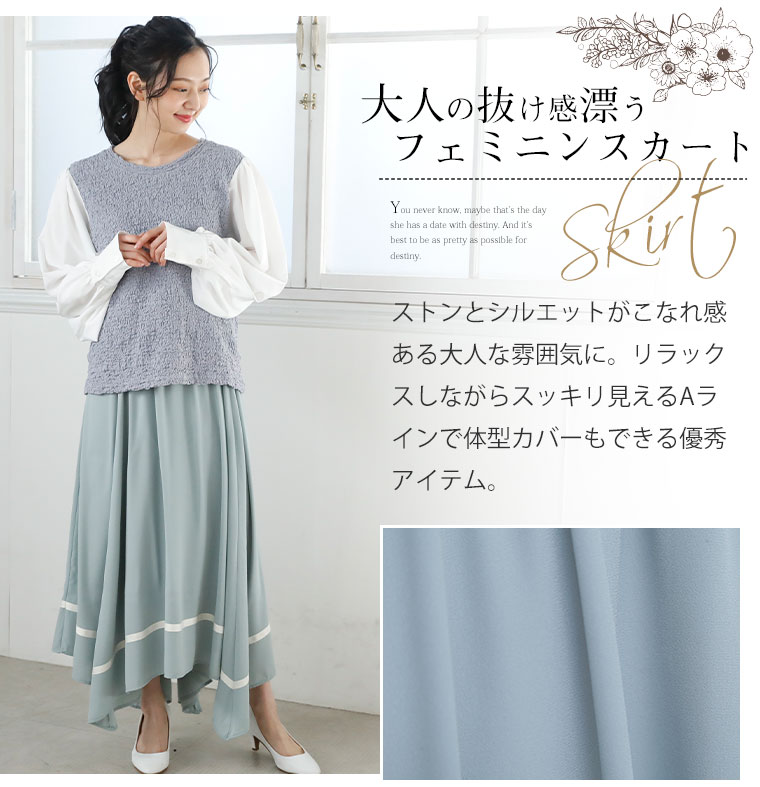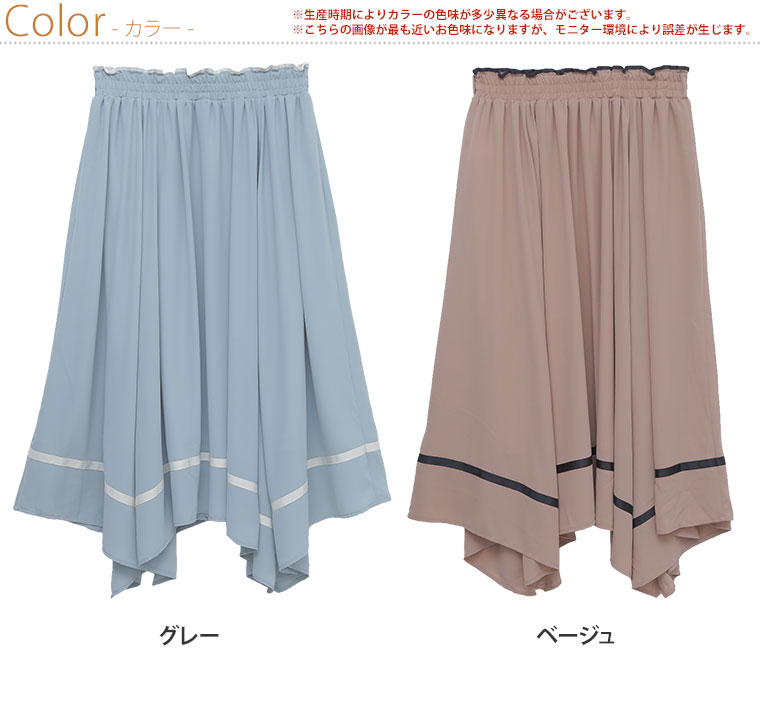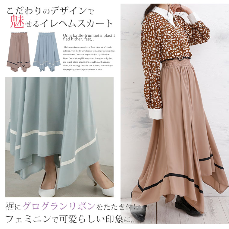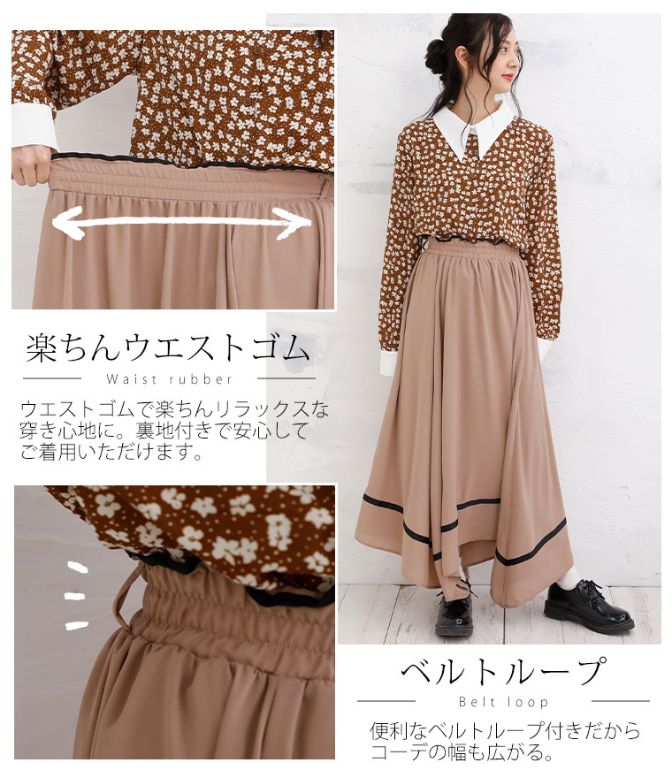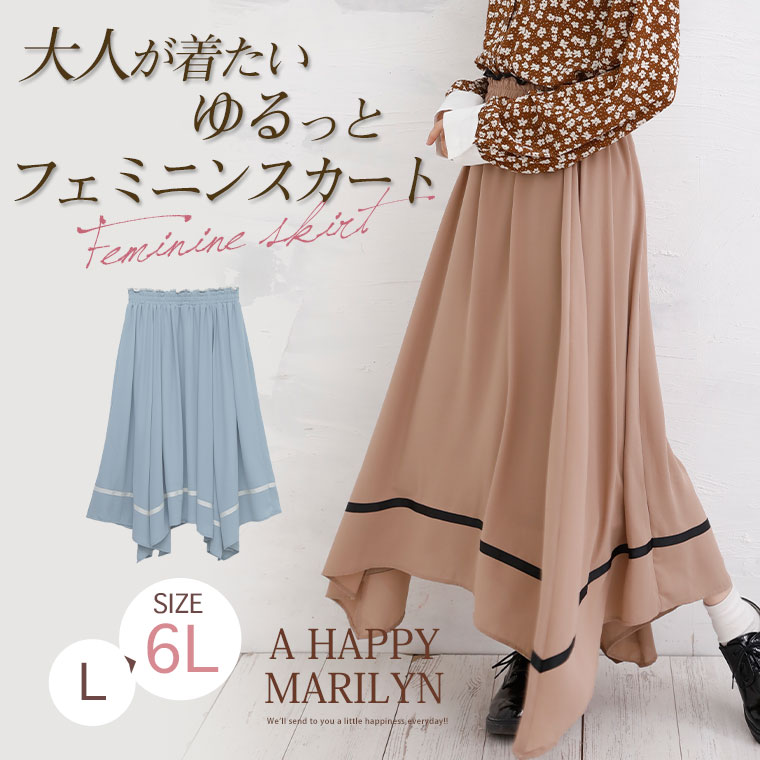 スカート ボトムス LL 3L 4L 5L 6L 春 春物 春服 ぽっちゃり ゆったり お腹 太もも お尻 腰周り かわいい おしゃれ カジュアル ナチュラル 裾 グログランリボン デザイン イレヘムスカート