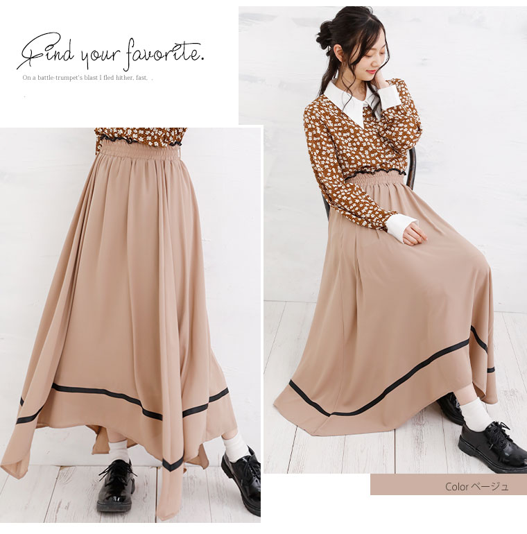 4. 大きいサイズ 裾 グログランリボン デザイン イレヘムスカート