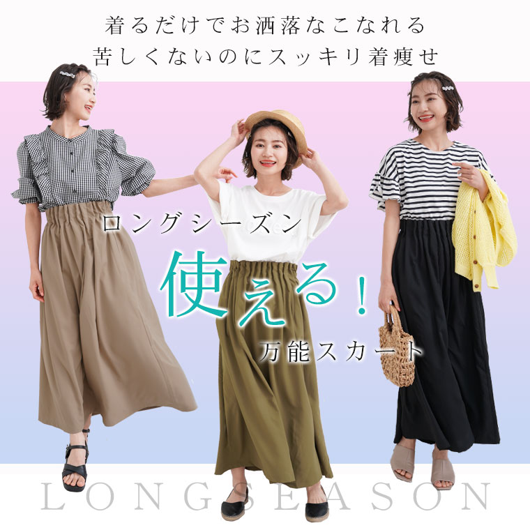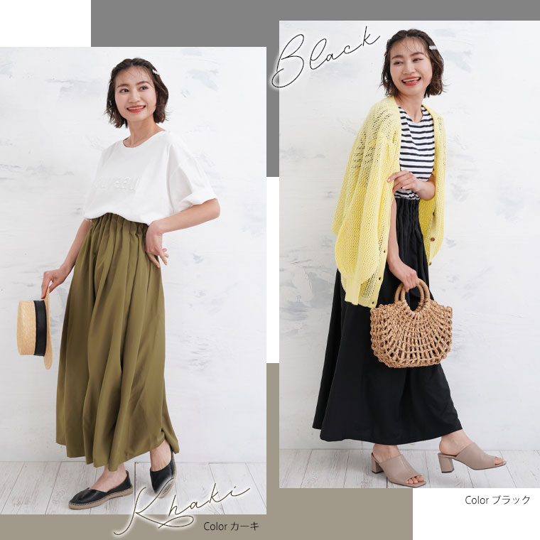楽ちんにすっきりシルエットを作れるふんわりロングスカート♪