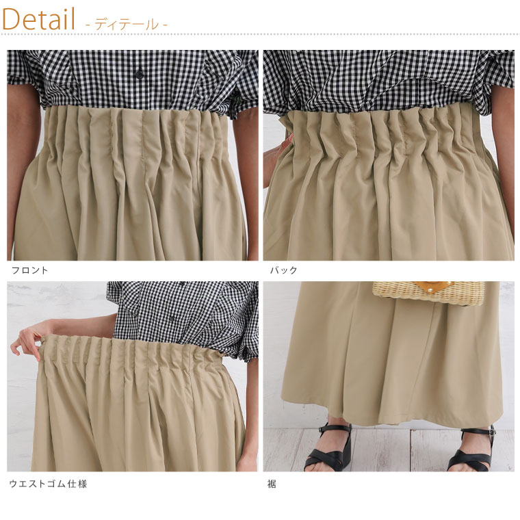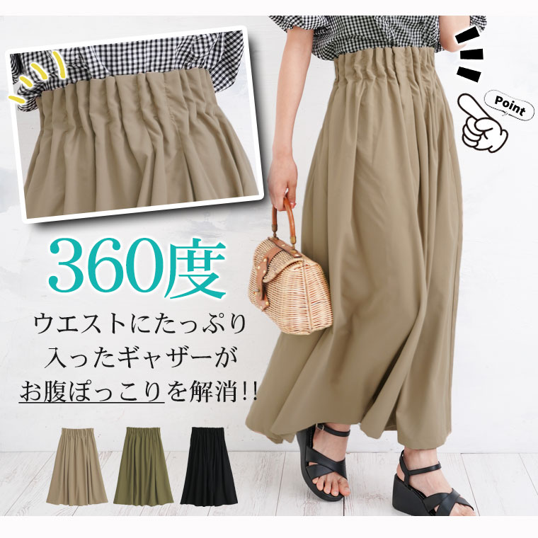 ウエストギャザーでお腹スッキリ ストレッチ ナイロンスカート