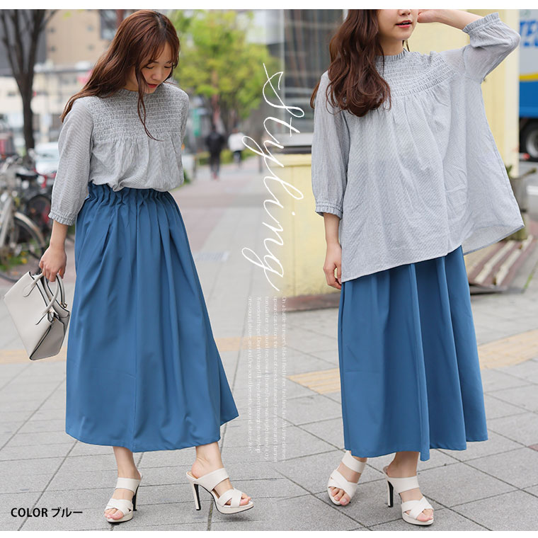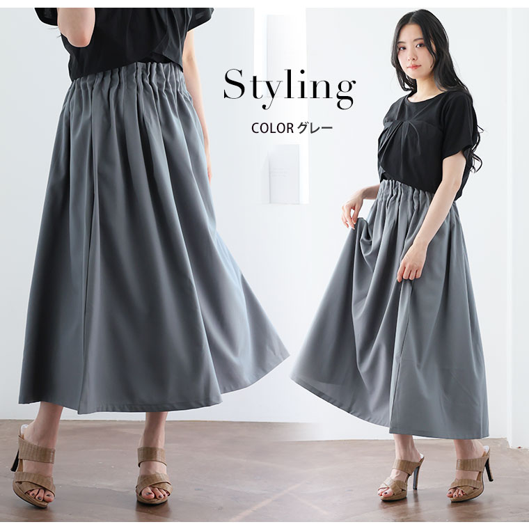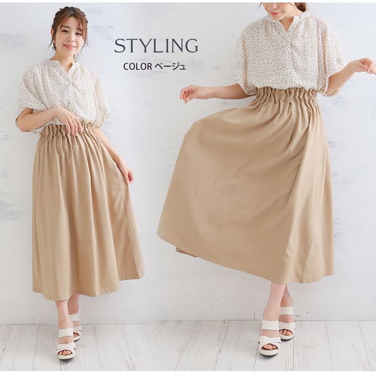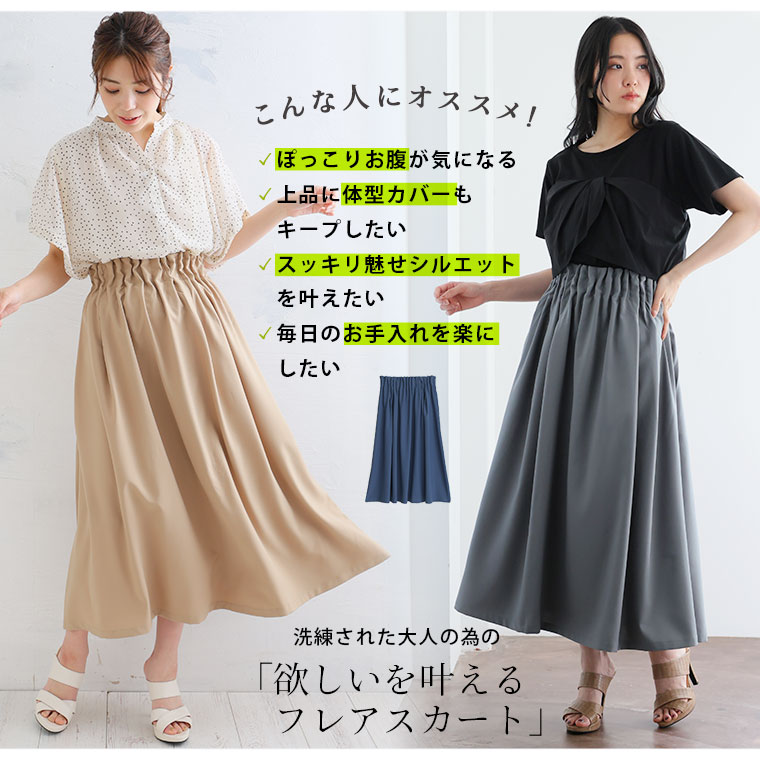 ウエストギャザーで着痩せが叶う! 着回し美人フレアスカート