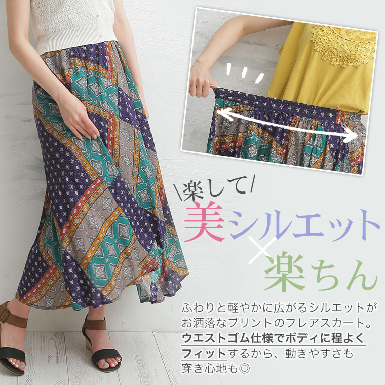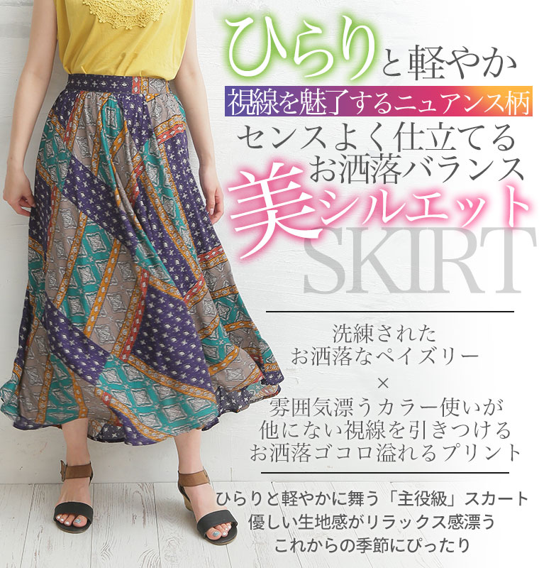 お洒落なニュアンス柄が視線を惹くオトナのロングスカート