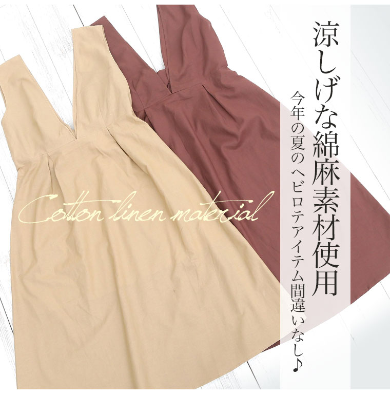 涼しげな綿麻素材でさっと着るだけ大人ジャンバースカート