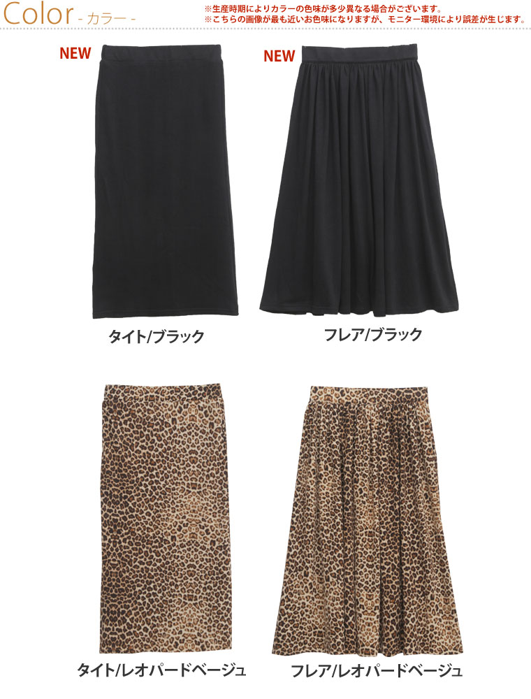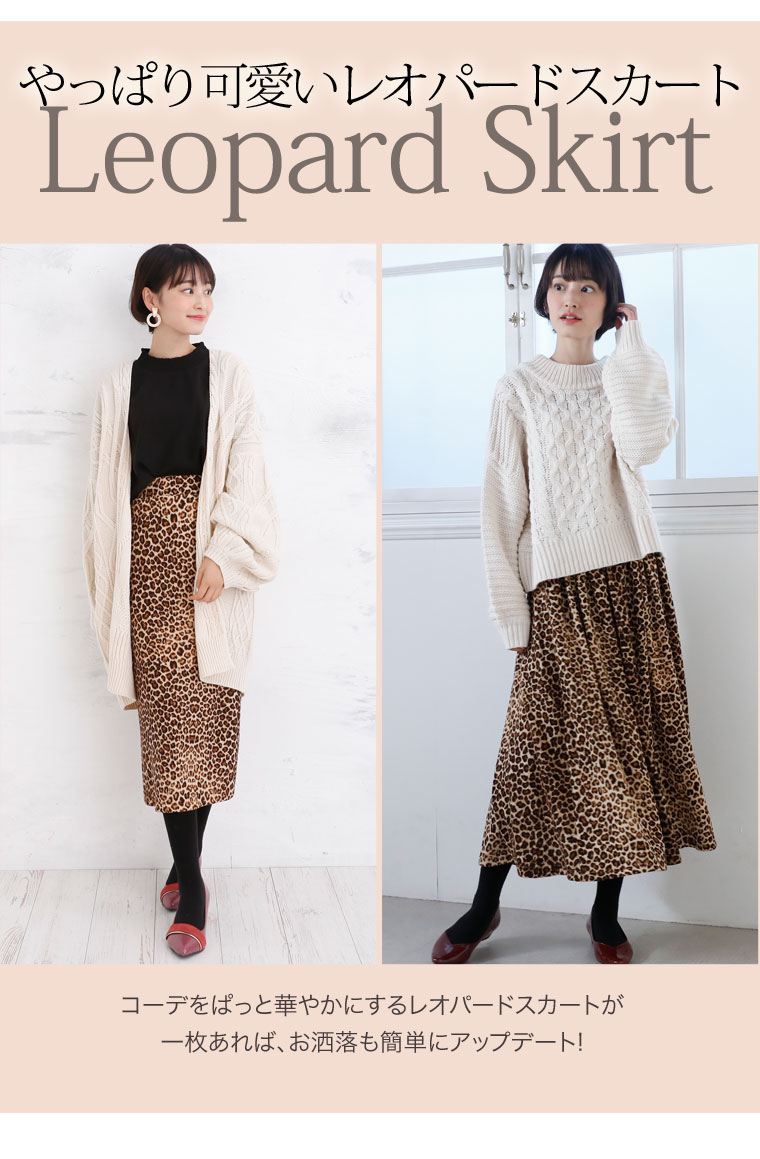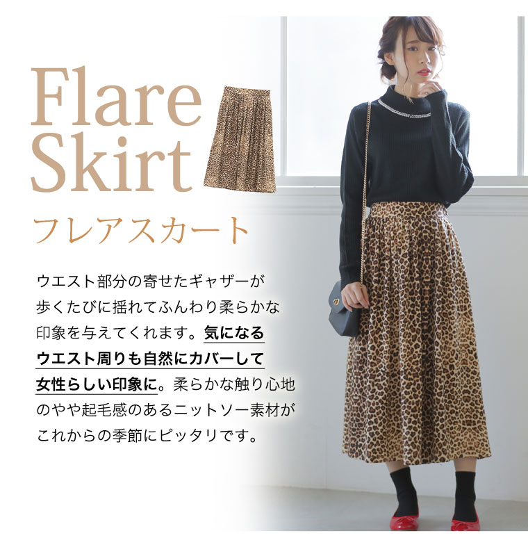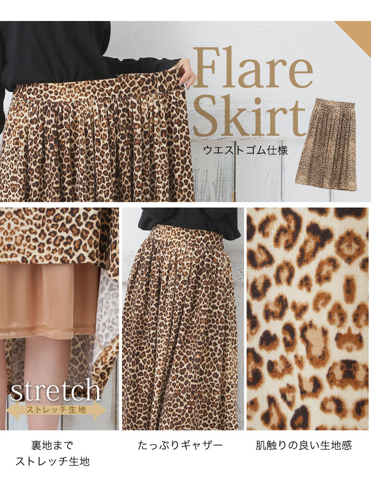 フレア・タイトの2種類から選べるニットソー生地のレオパードスカート