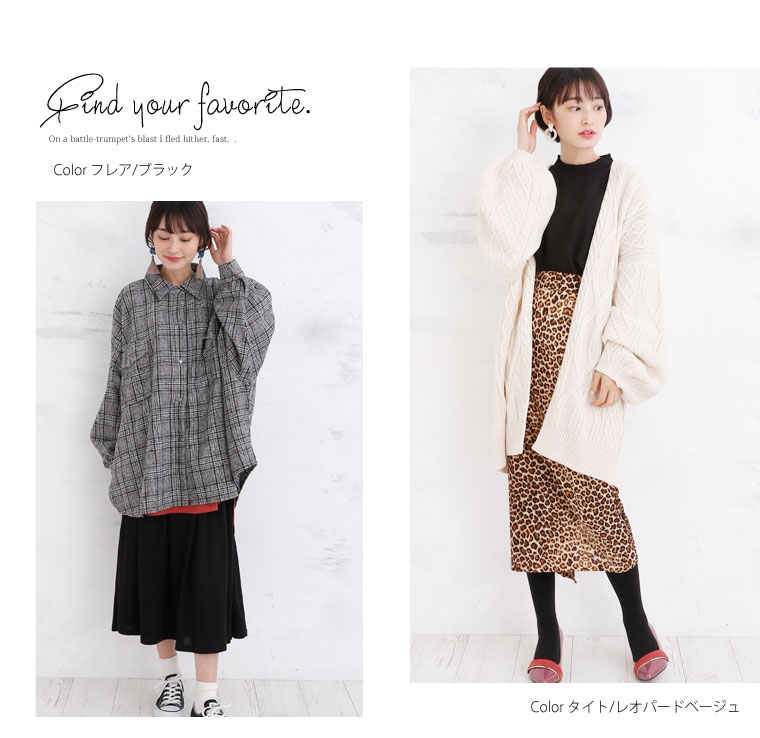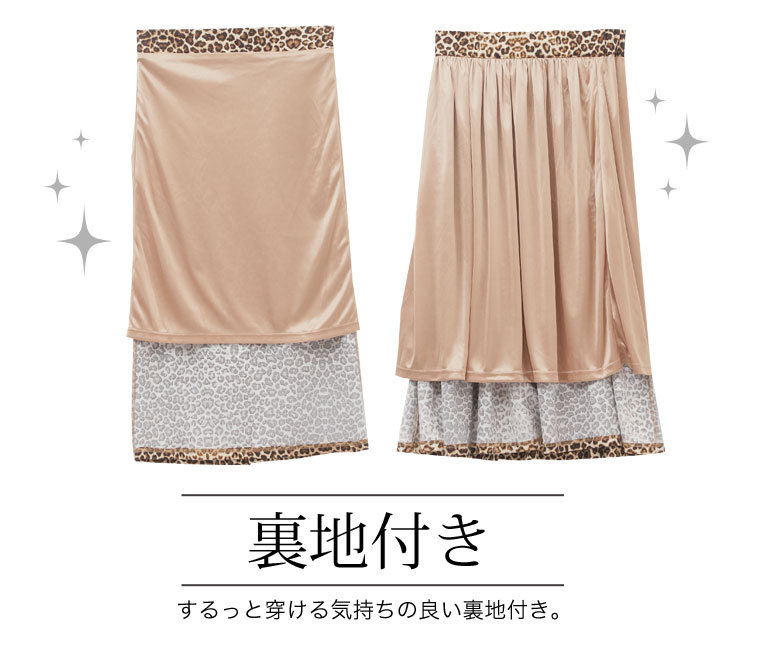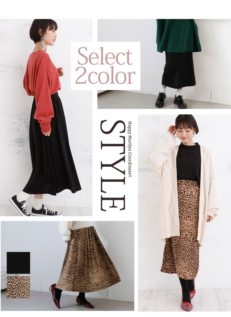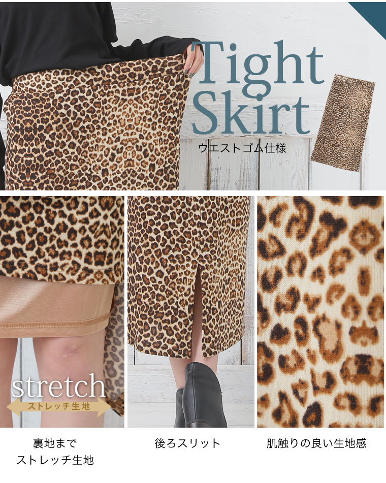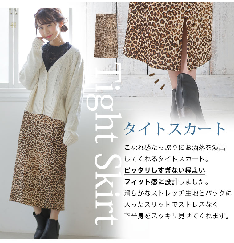 フレア・タイトの2種類から選べるニットソー生地のレオパードスカート
