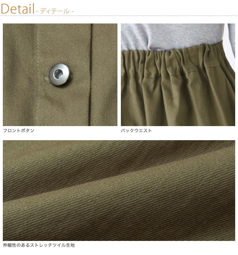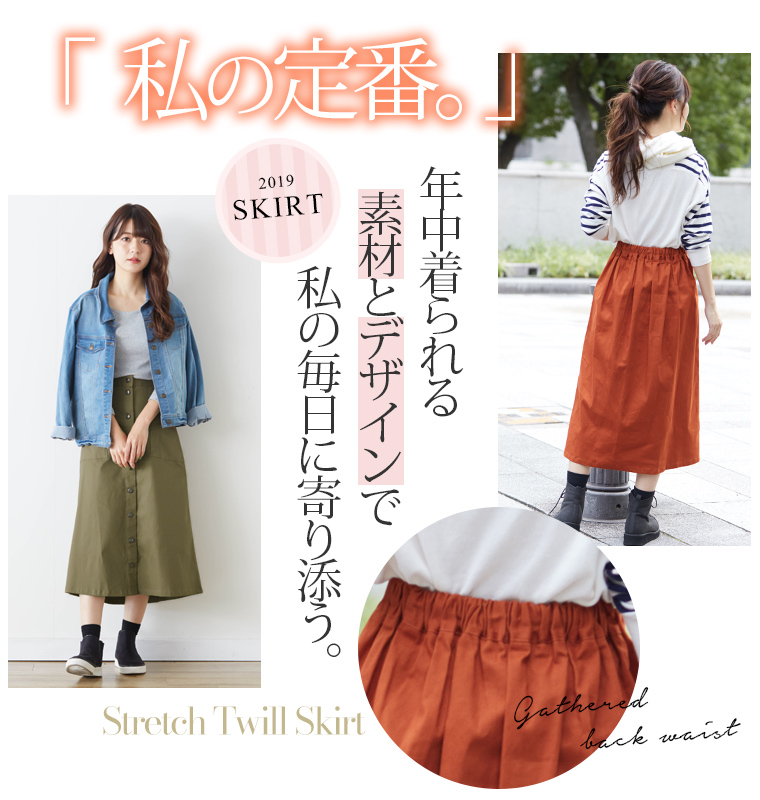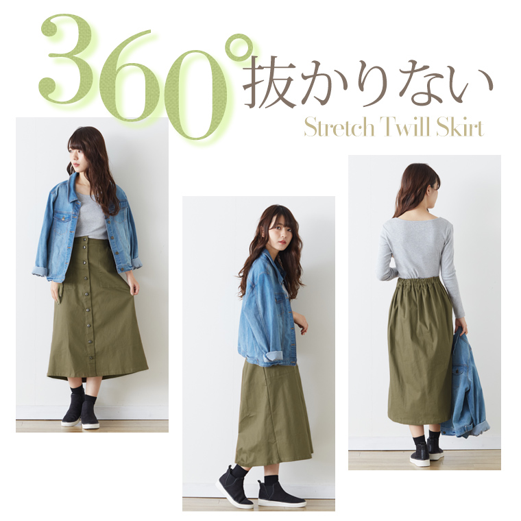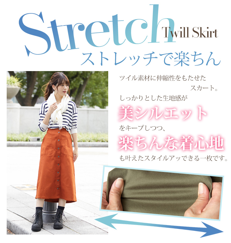 ツイル素材でしっかりなのにストレッチ!楽ちんなのにお洒落に決まるカジュアルスカート