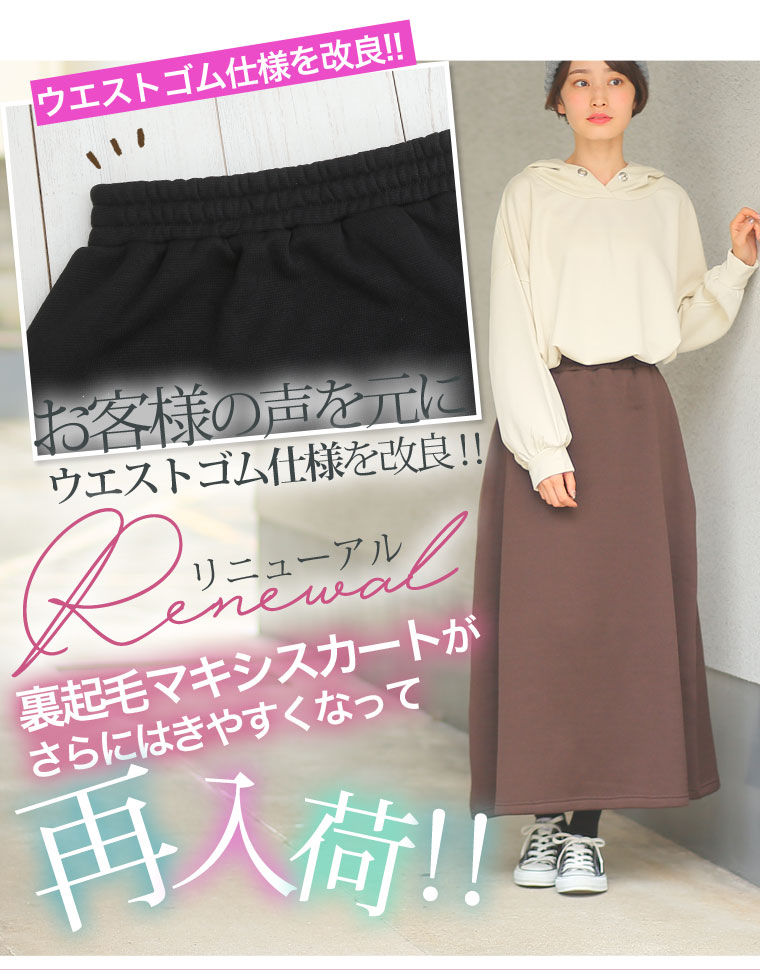 ゆったり裏起毛であったかスタイル。HEATシリーズにマキシスカートが登場