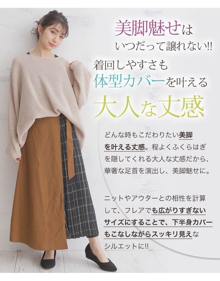 軽やかな生地感で下半身をすっきりカバー◎部分プリーツ仕様でアクセントをプラス。
