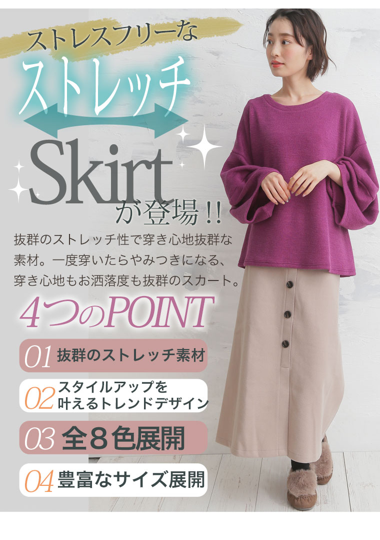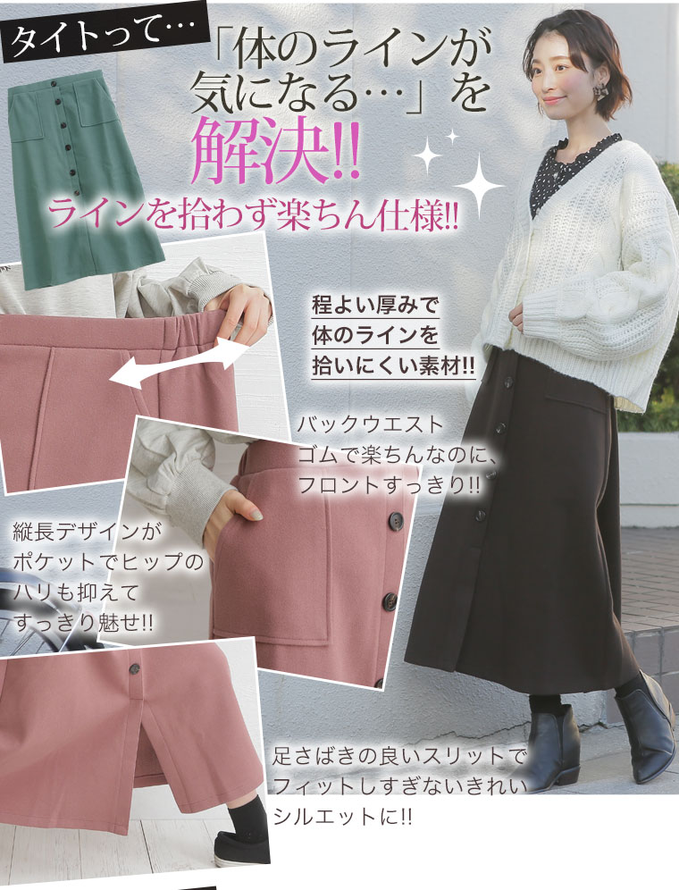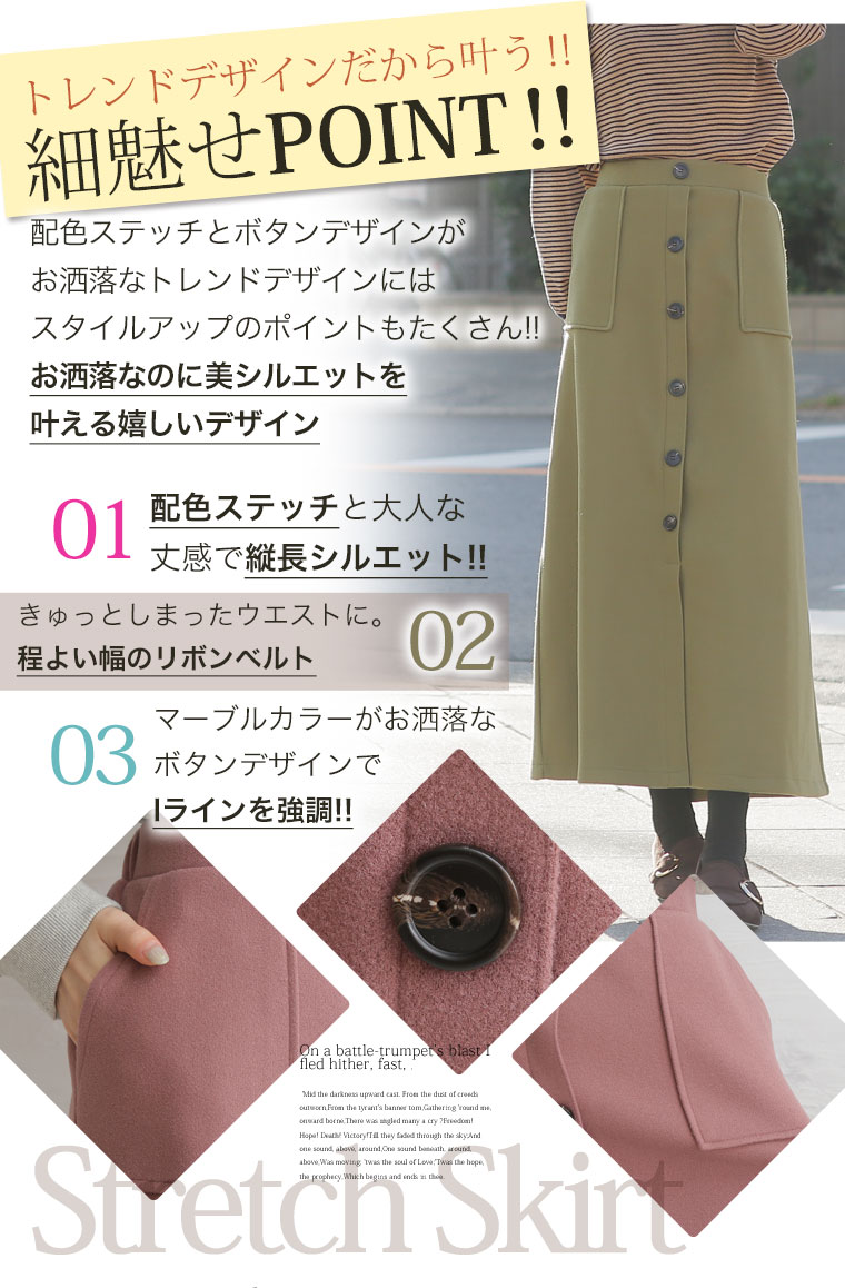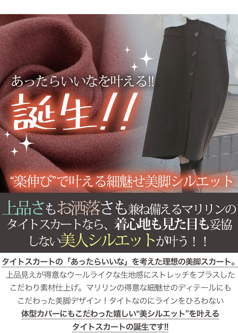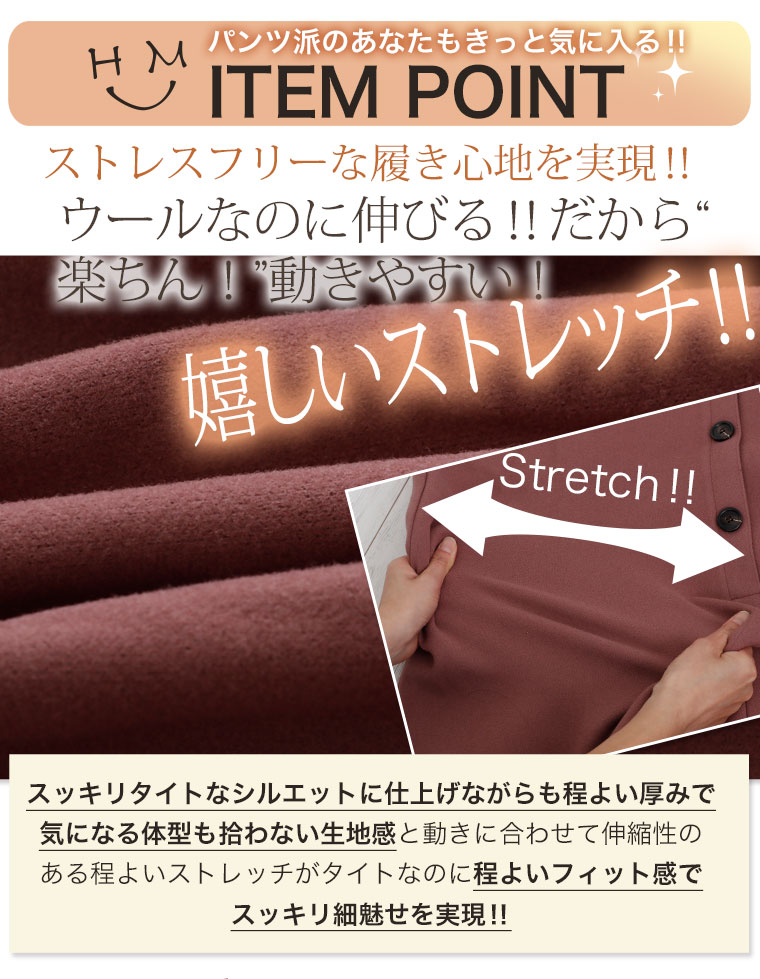 フロントボタンですっきりシルエット!!美脚が叶うウールライクスカート