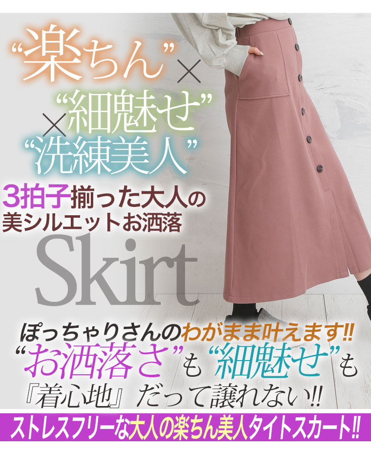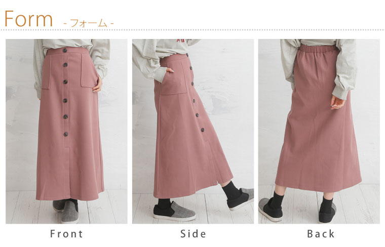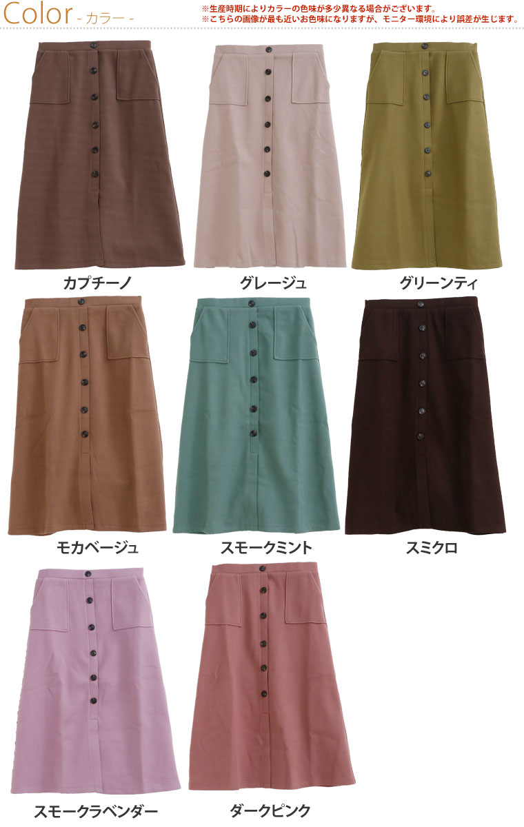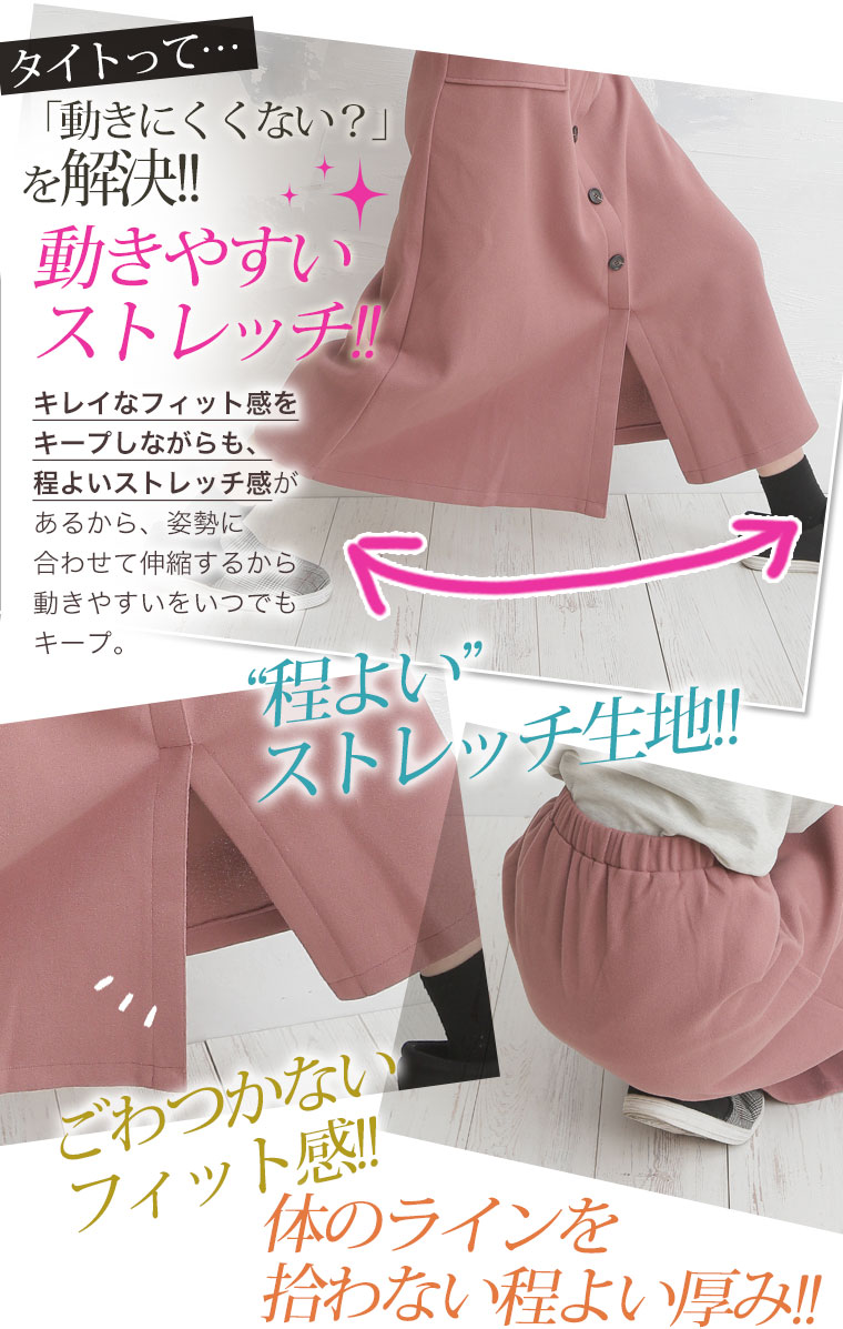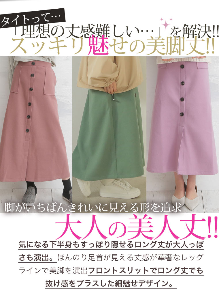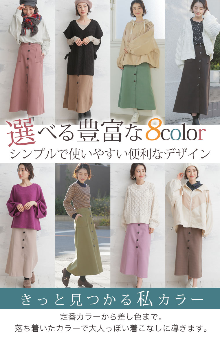 フロントボタンですっきりシルエット!!美脚が叶うウールライクスカート