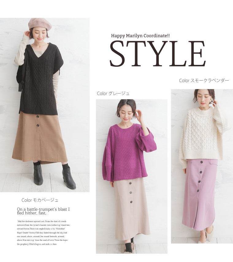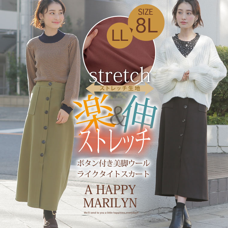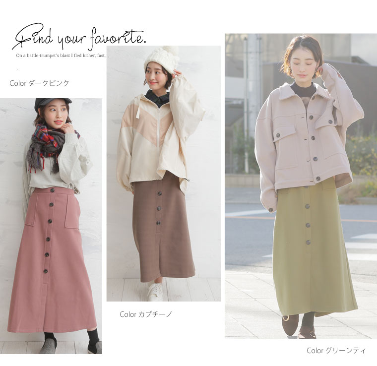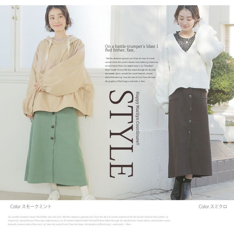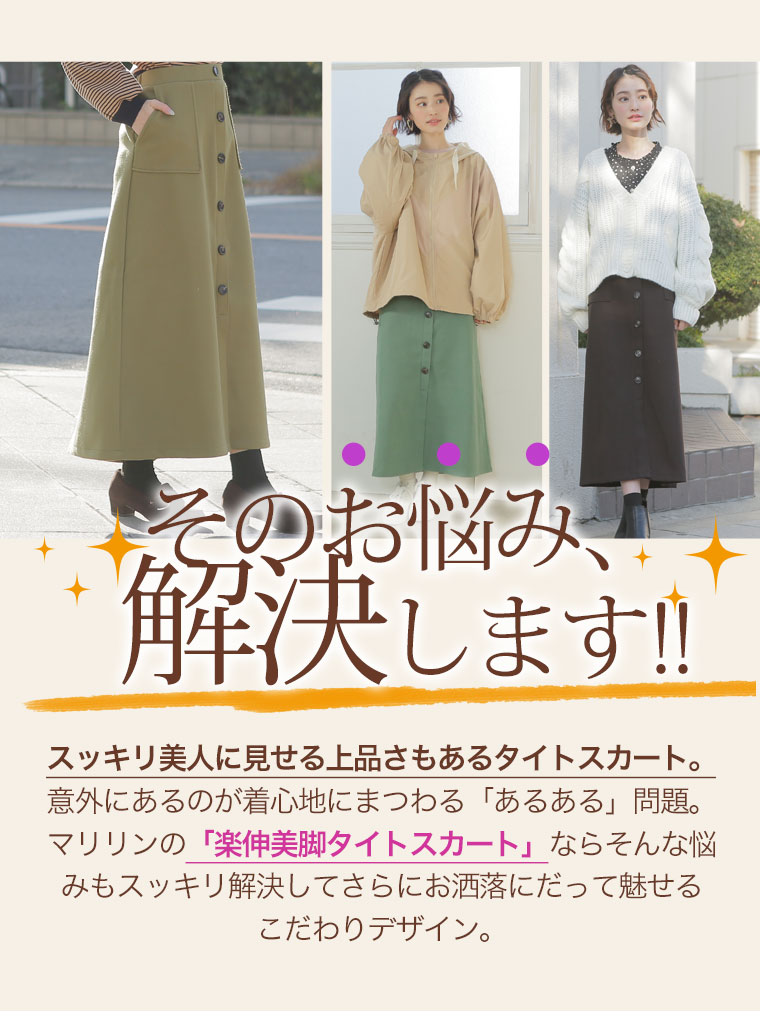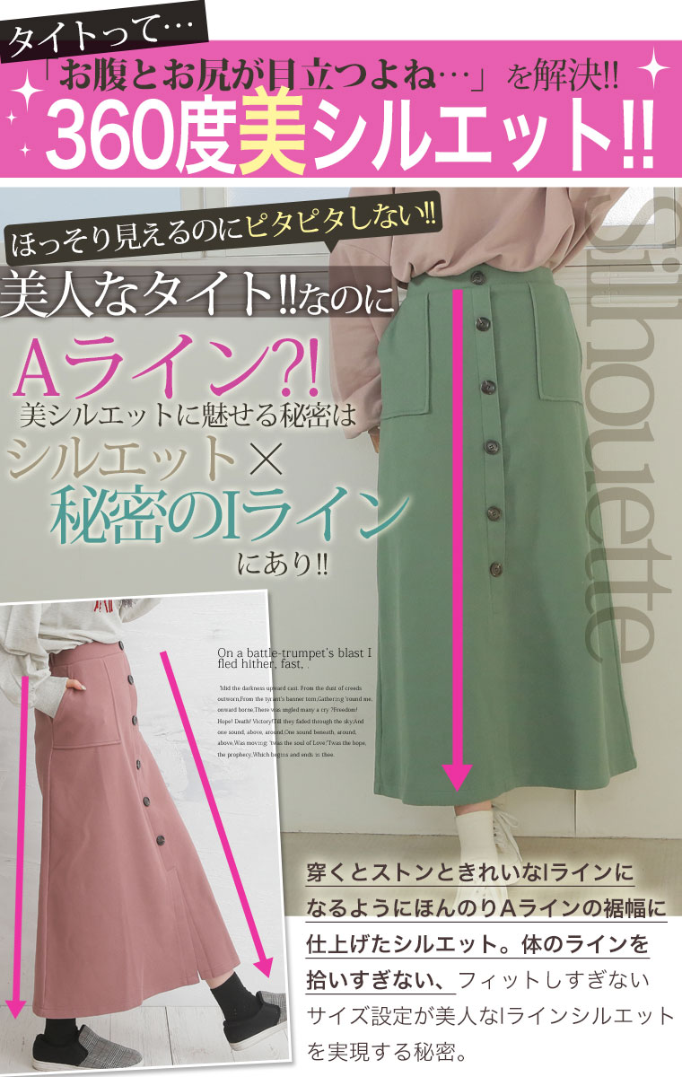 フロントボタンですっきりシルエット!!美脚が叶うウールライクスカート