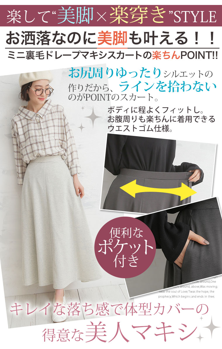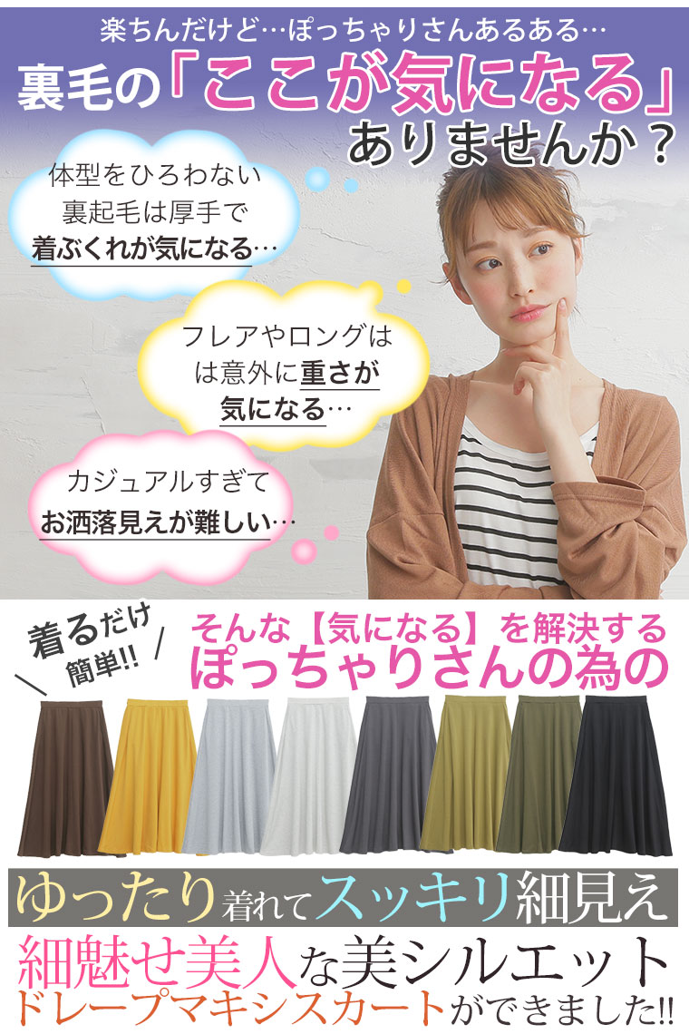 3. 大きいサイズ 美ライン ドレープ 美人 ミニ裏毛 マキシスカート