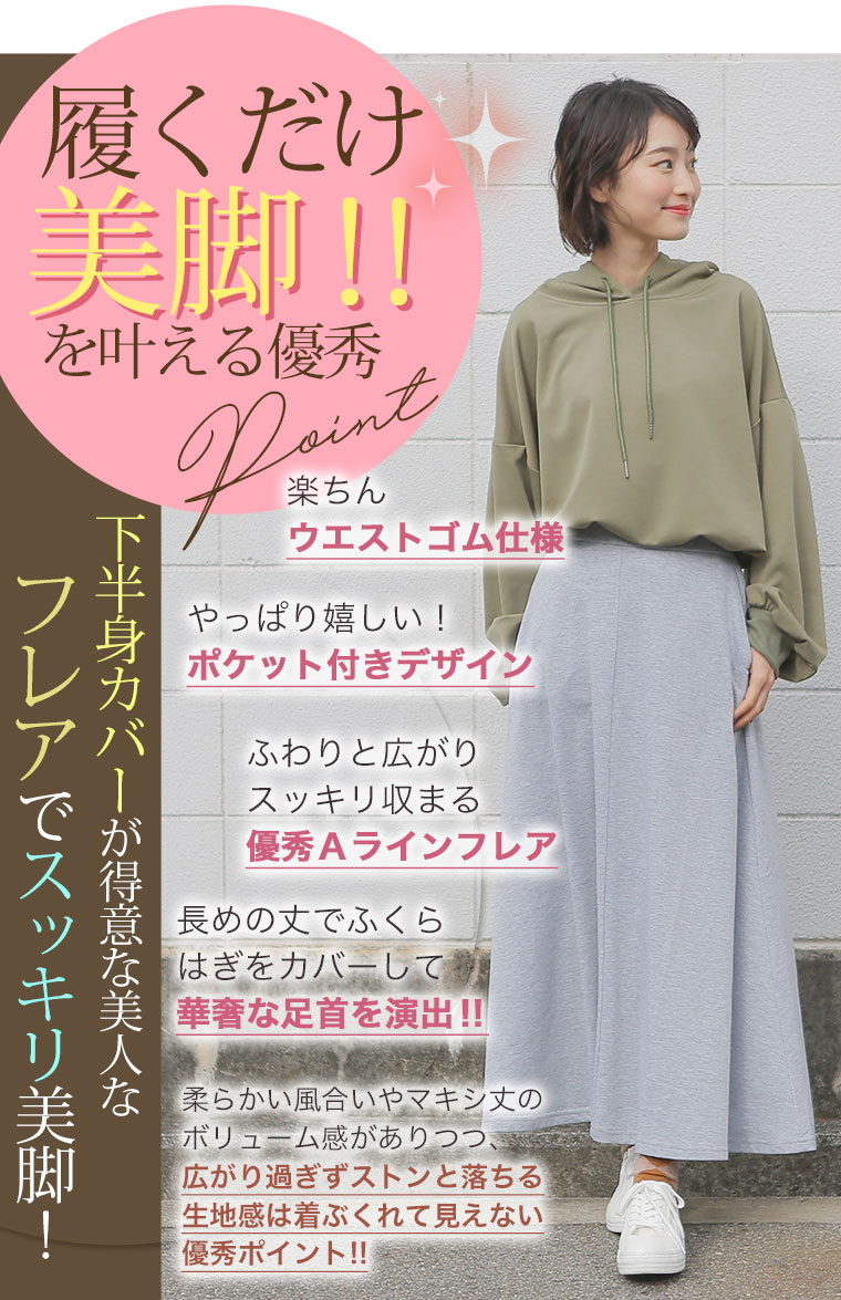 オリジナル スカート ボトムス ロングスカート マキシ丈スカート LL 3L 4L 5L 6L 7L 8L 春 春物 春服 ゆったり お腹太ももお尻腰周り 美ライン ドレープ 美人 ミニ裏毛 マキシスカート