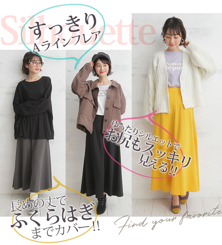 ロングスカートで裾はしっかり広がるのでとてもシルエットが綺麗です。人気カラーはすぐに完売してしまうので是非再販してほしいスカートです