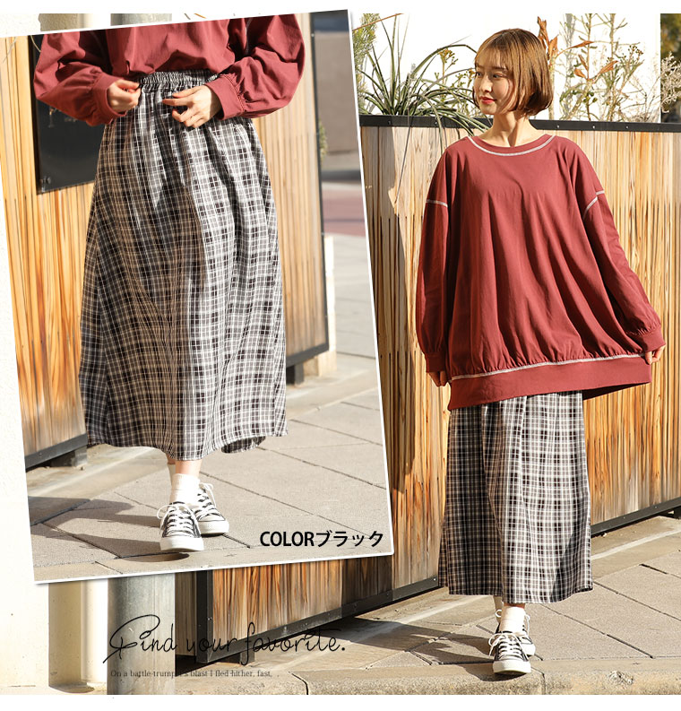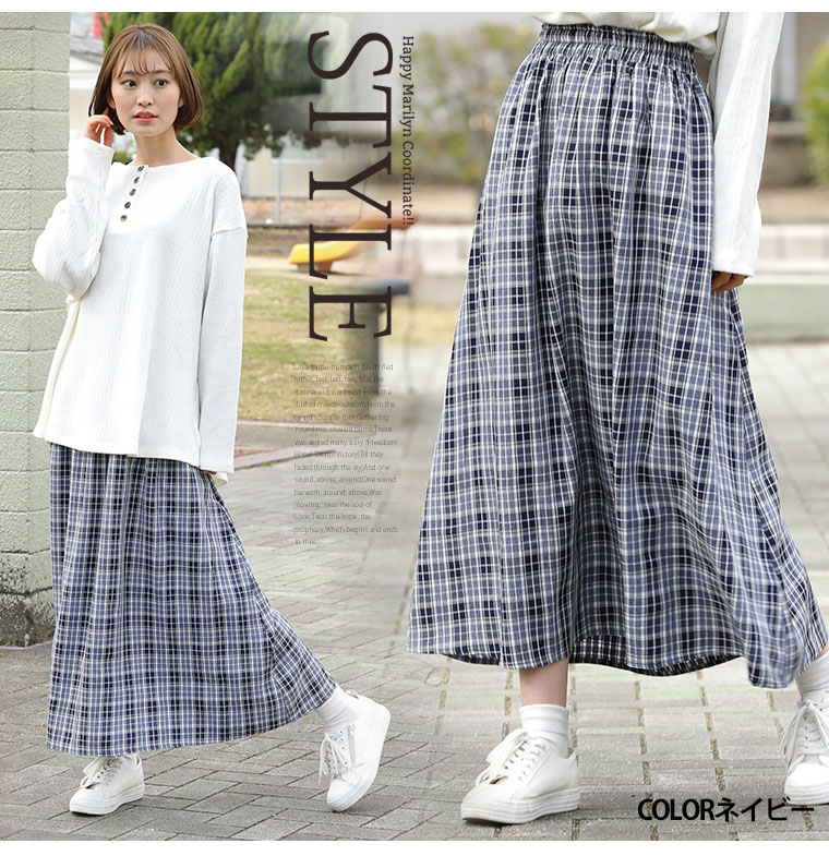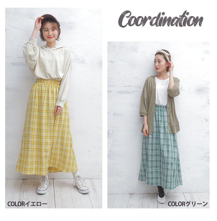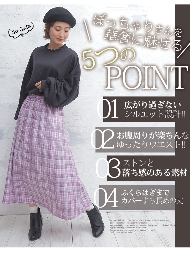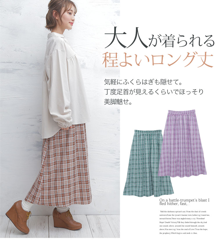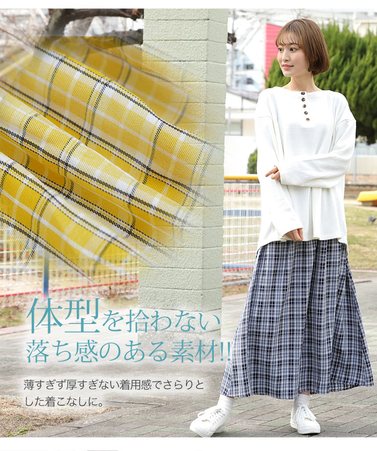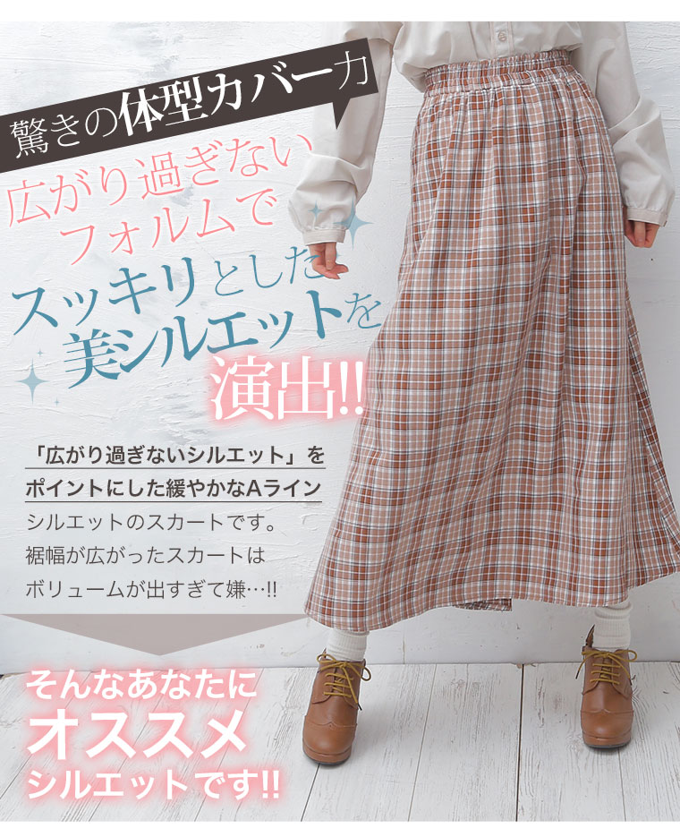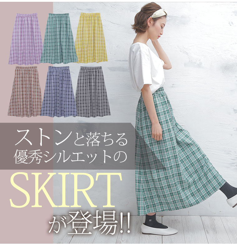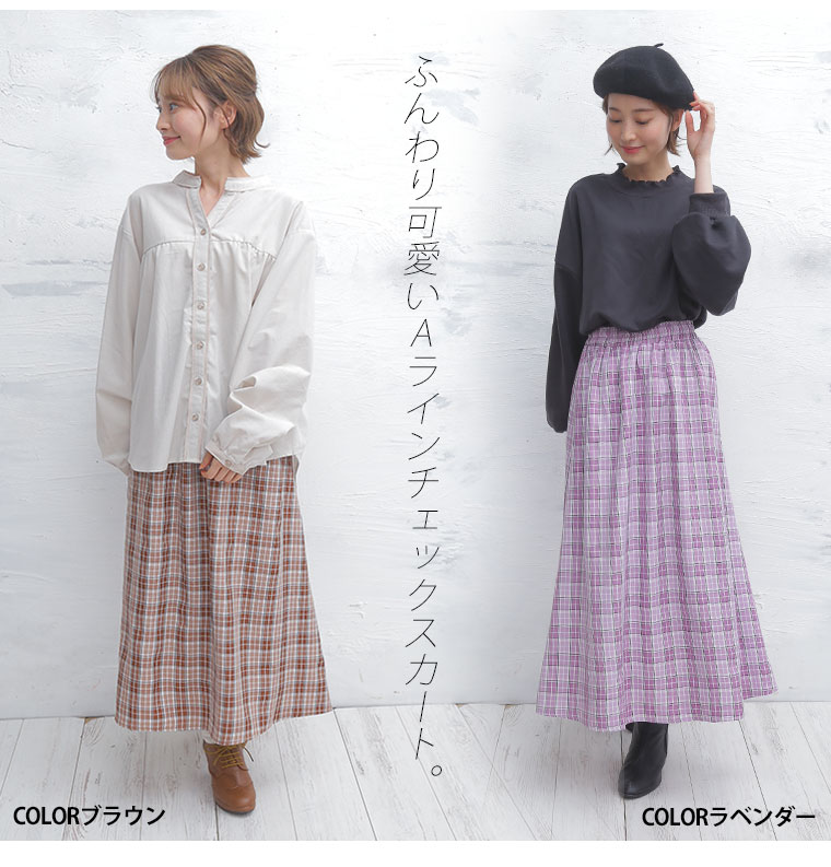 ふんわり可愛いAラインにキレイめカラーのチェック生地が可愛い春スカート。