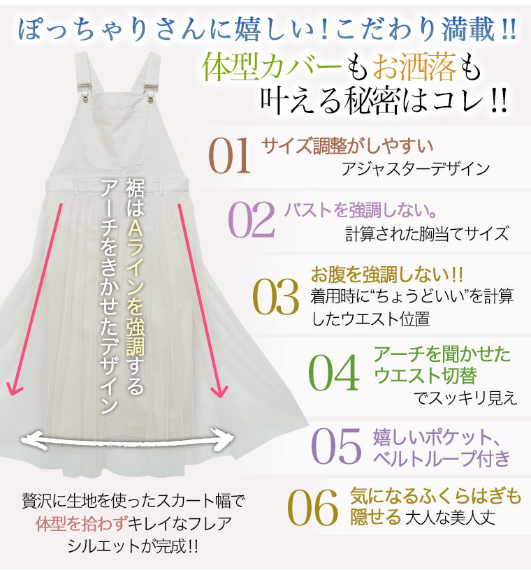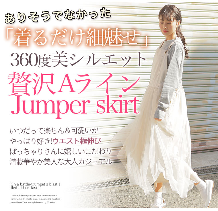 楽ちんなのにお洒落!ふわりと広がるAラインがかわいいジャンバースカート