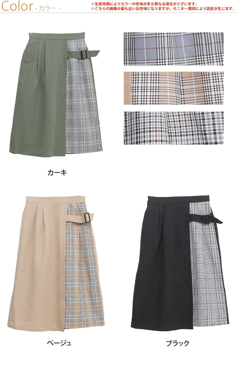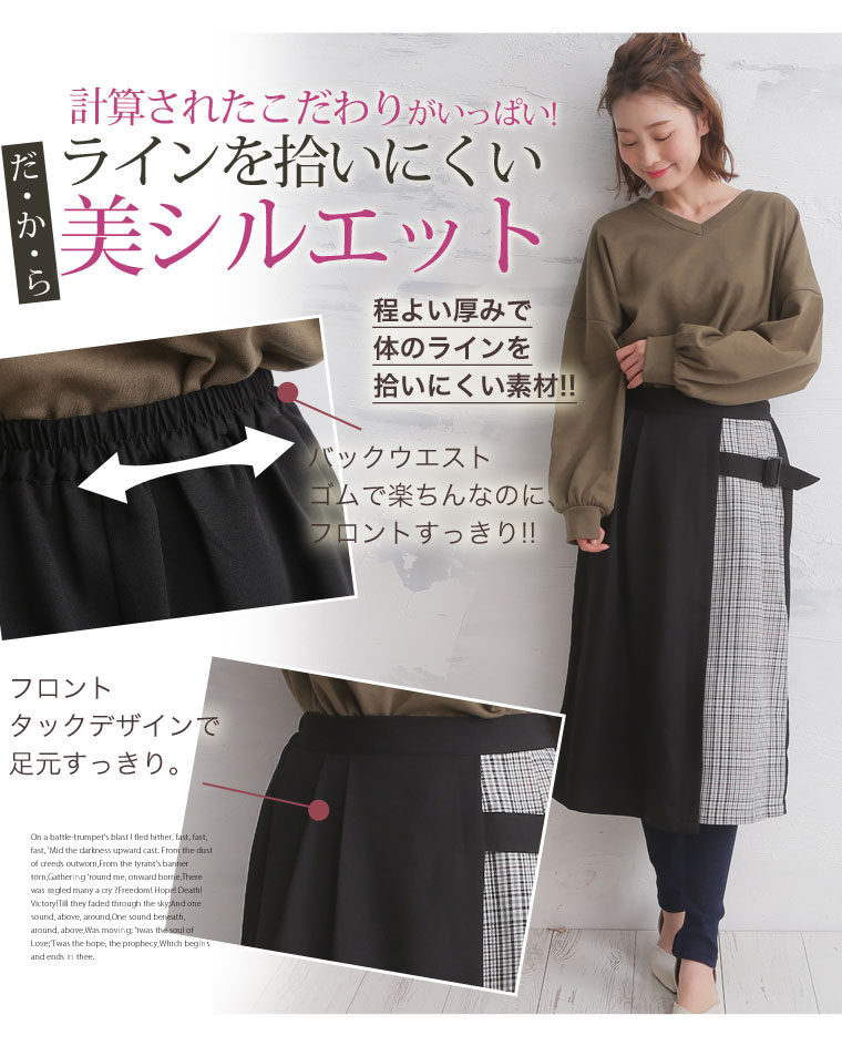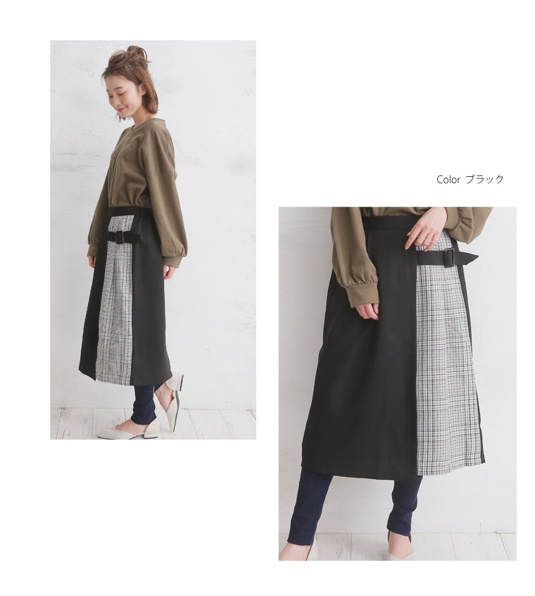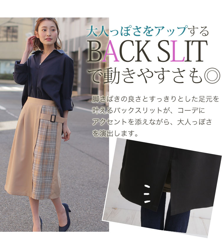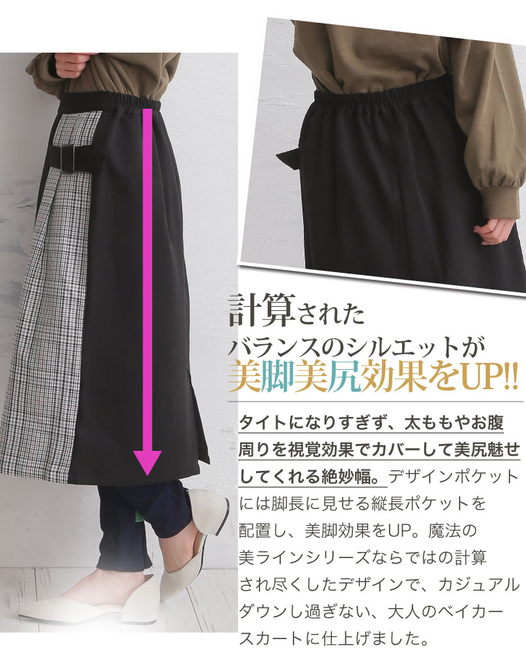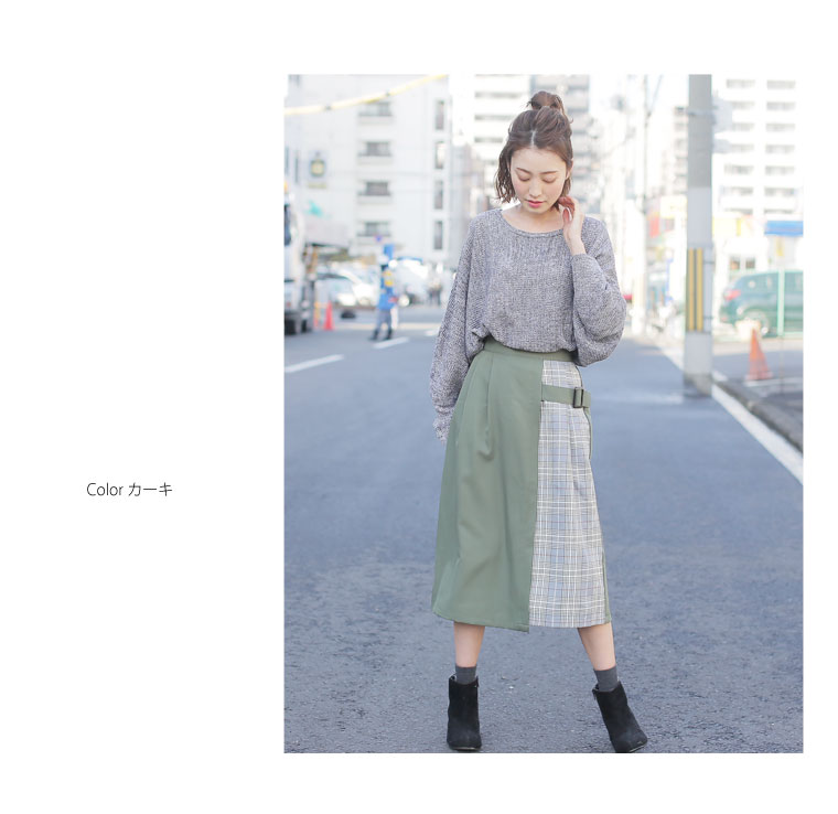 チェック×無地の配色切替でバランスよく!!チェック柄タイトスカート