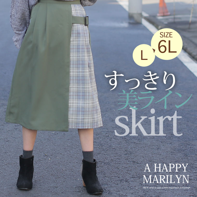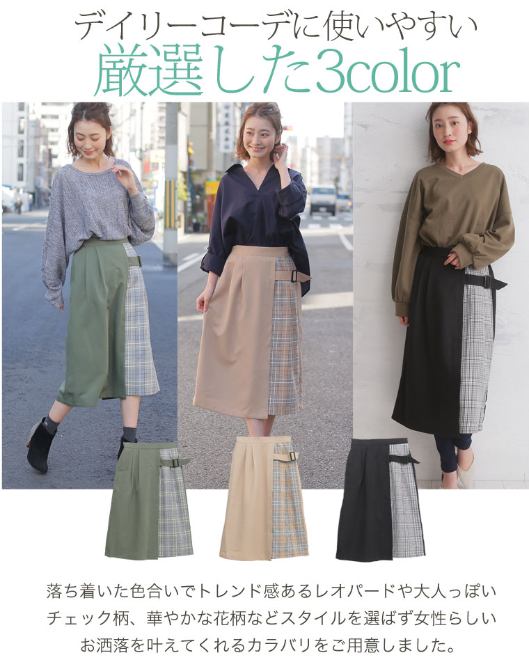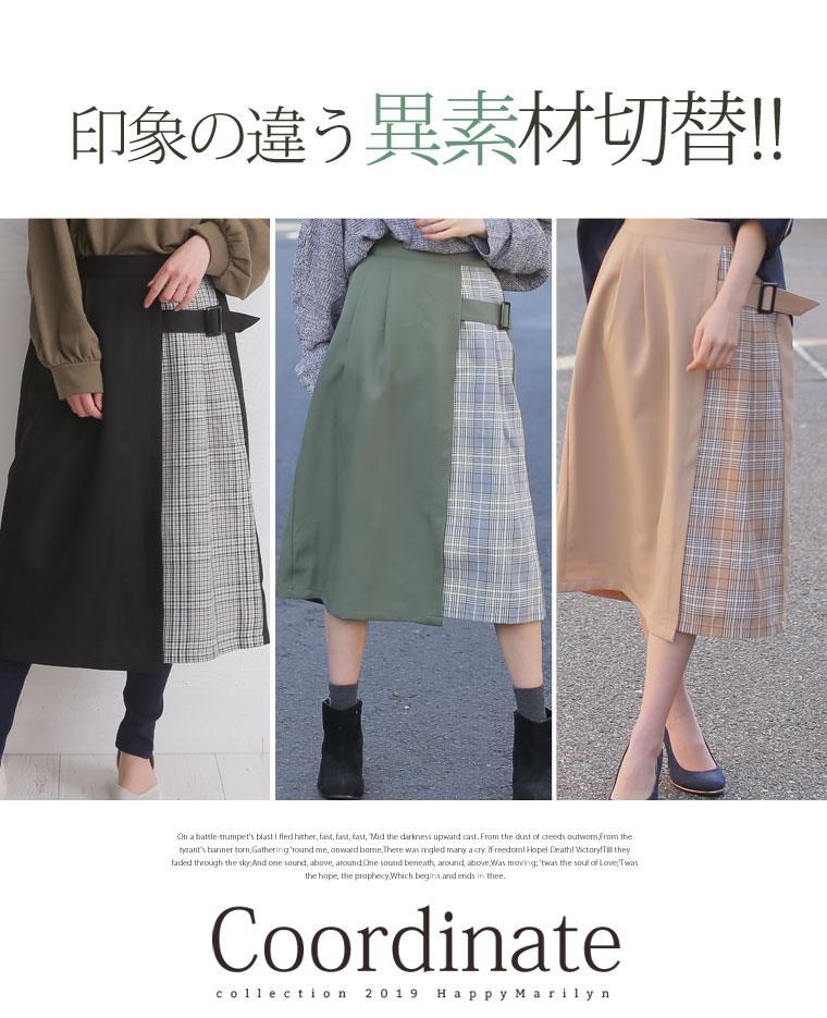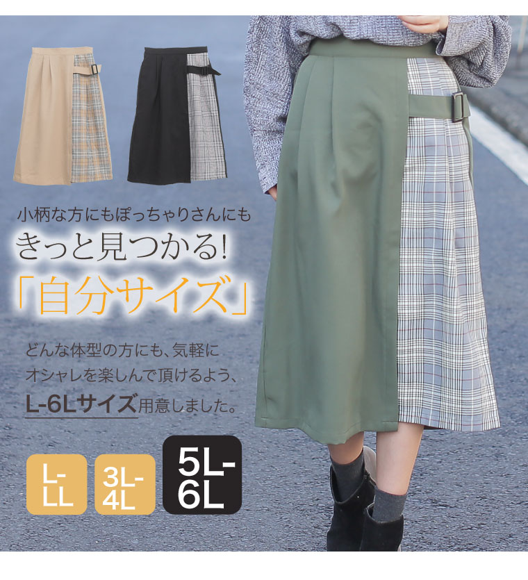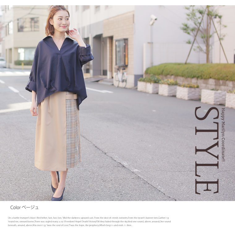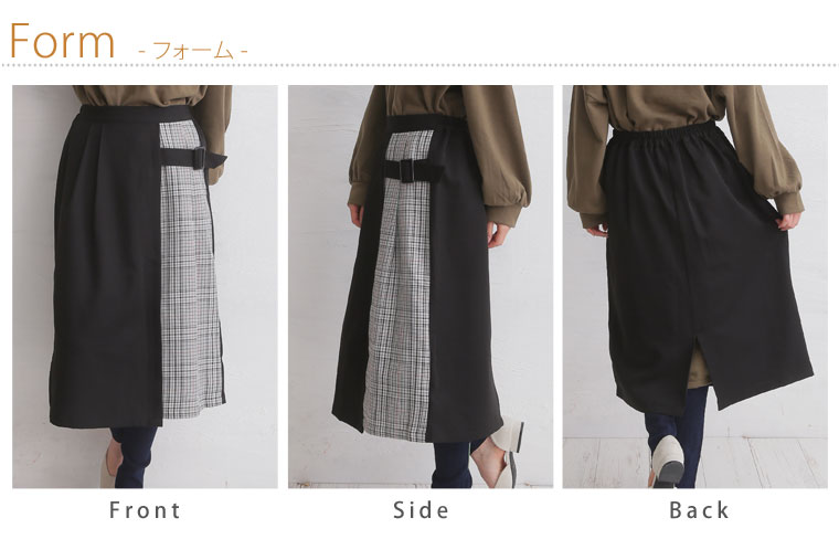 チェック×無地の配色切替でバランスよく!!チェック柄タイトスカート
