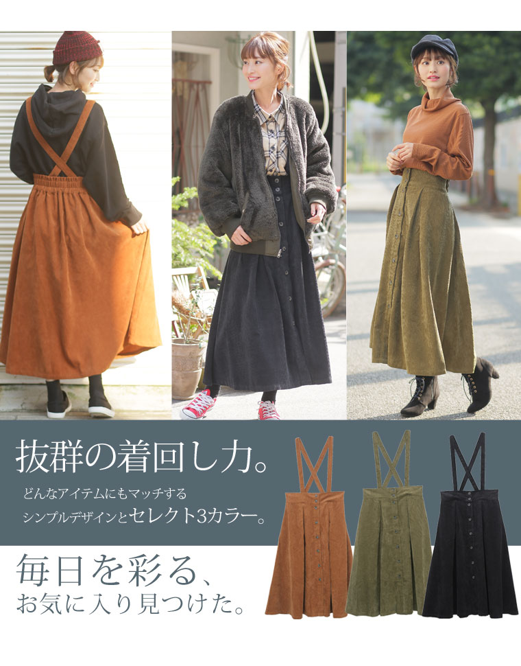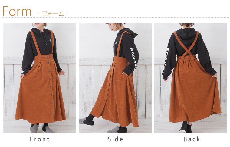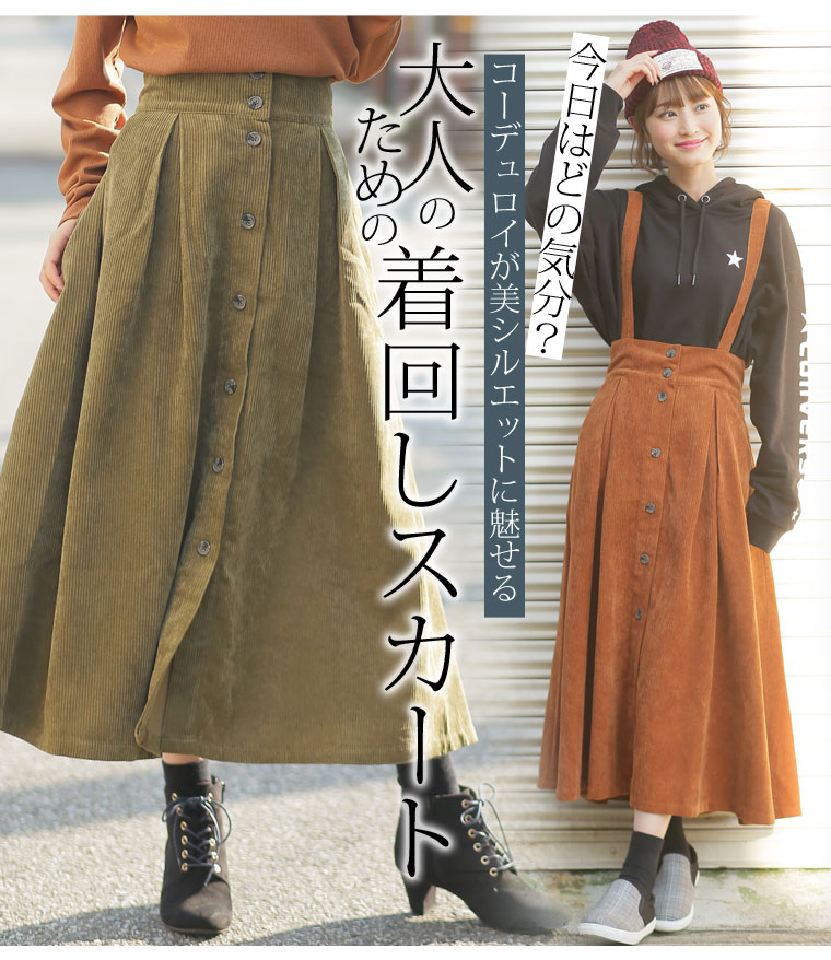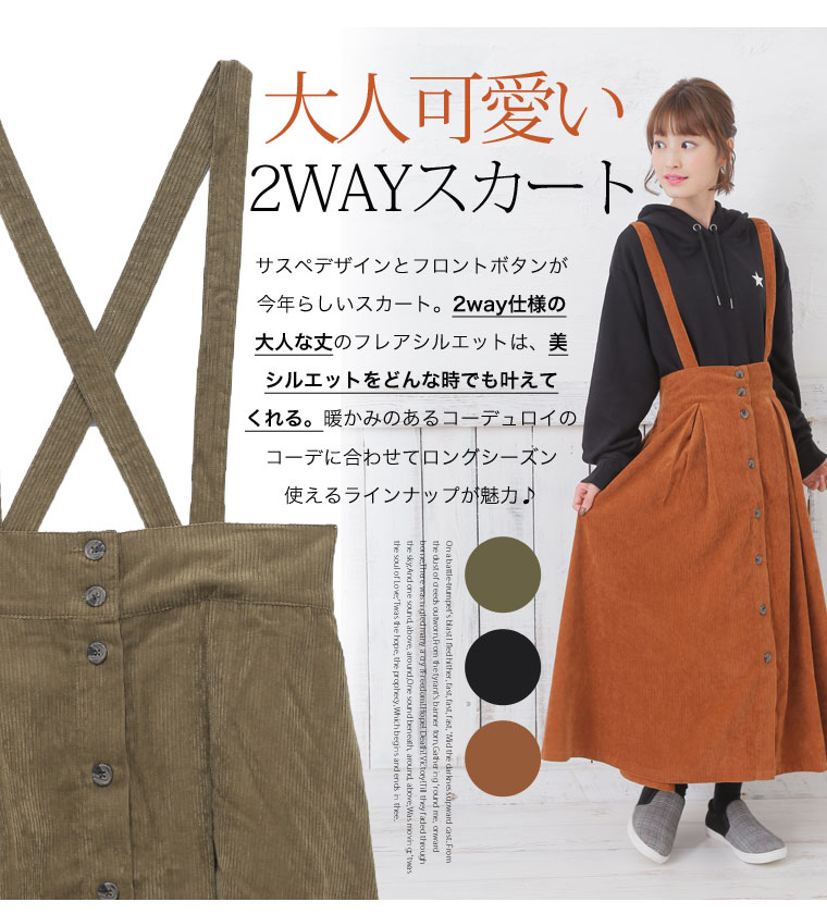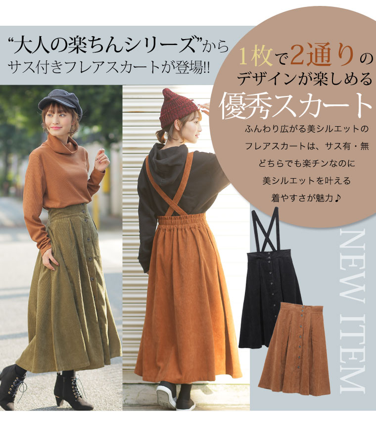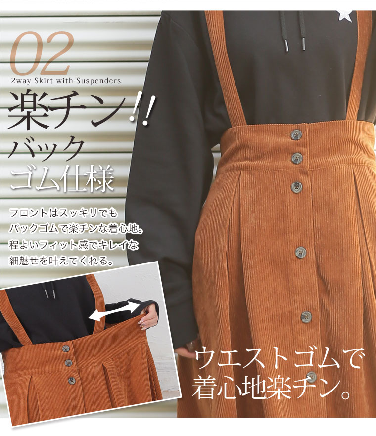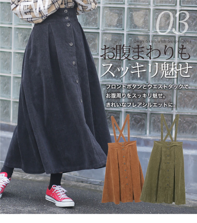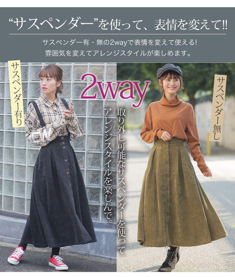 2wayで使えるサスペンダー付きコーデュロイフレアスカート