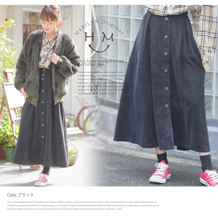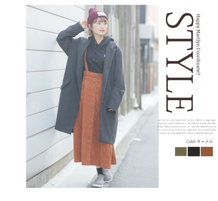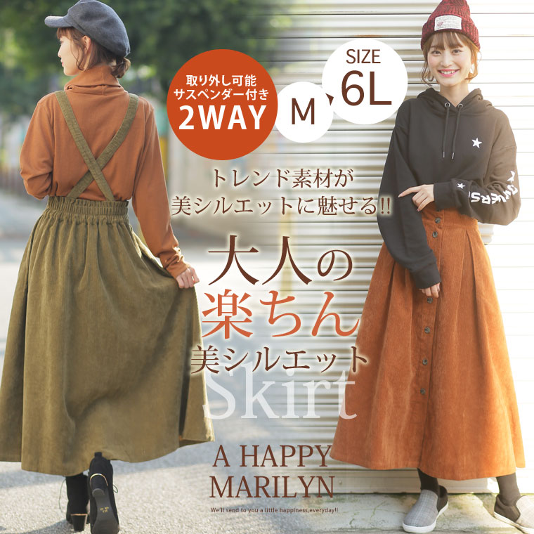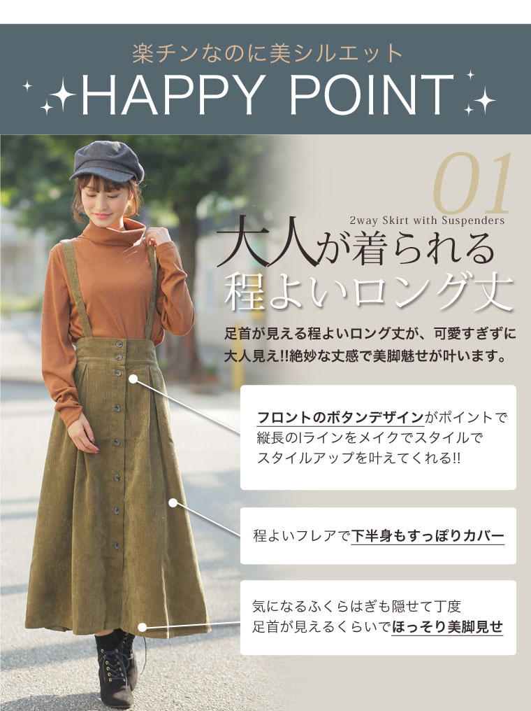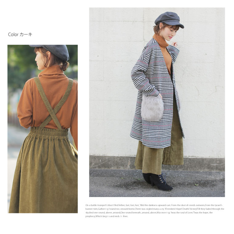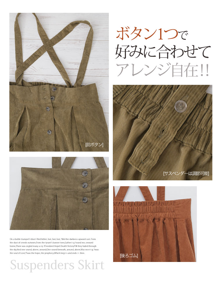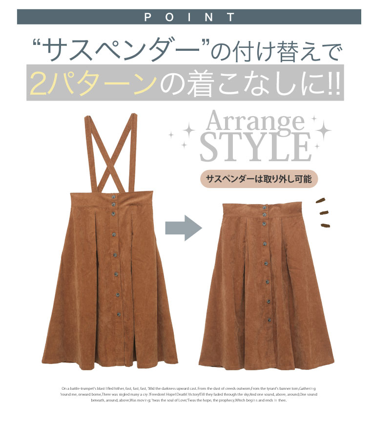 2wayで使えるサスペンダー付きコーデュロイフレアスカート