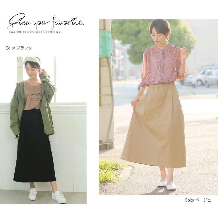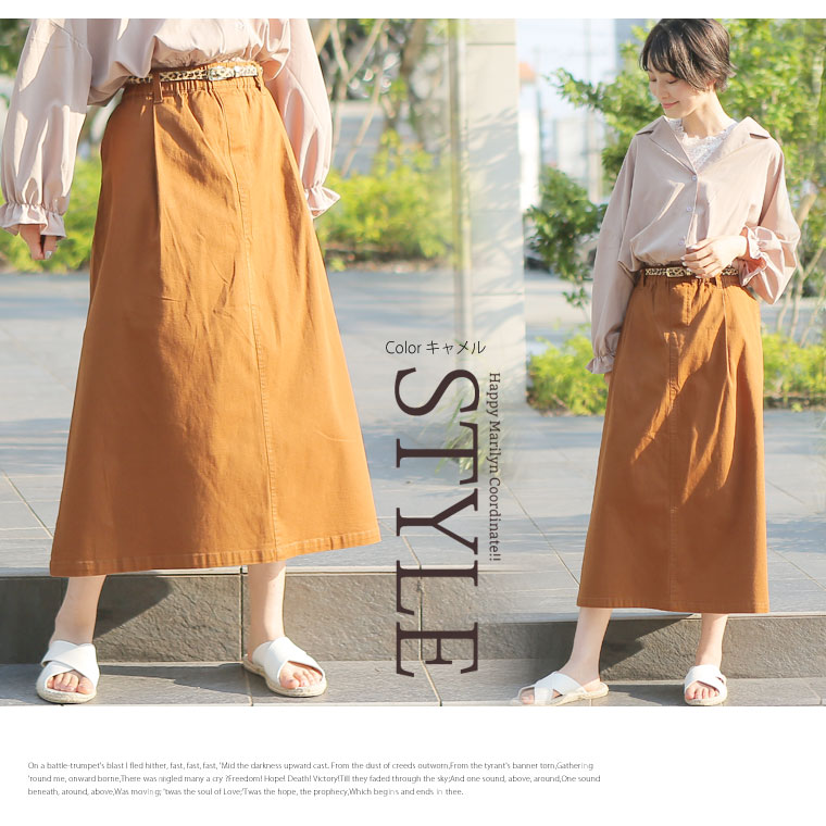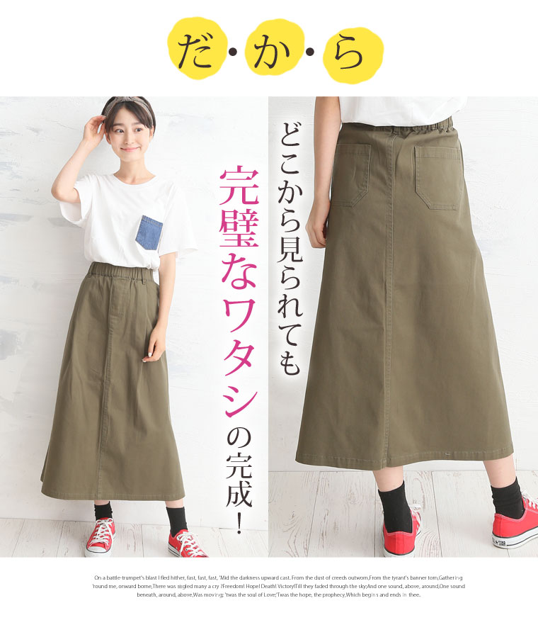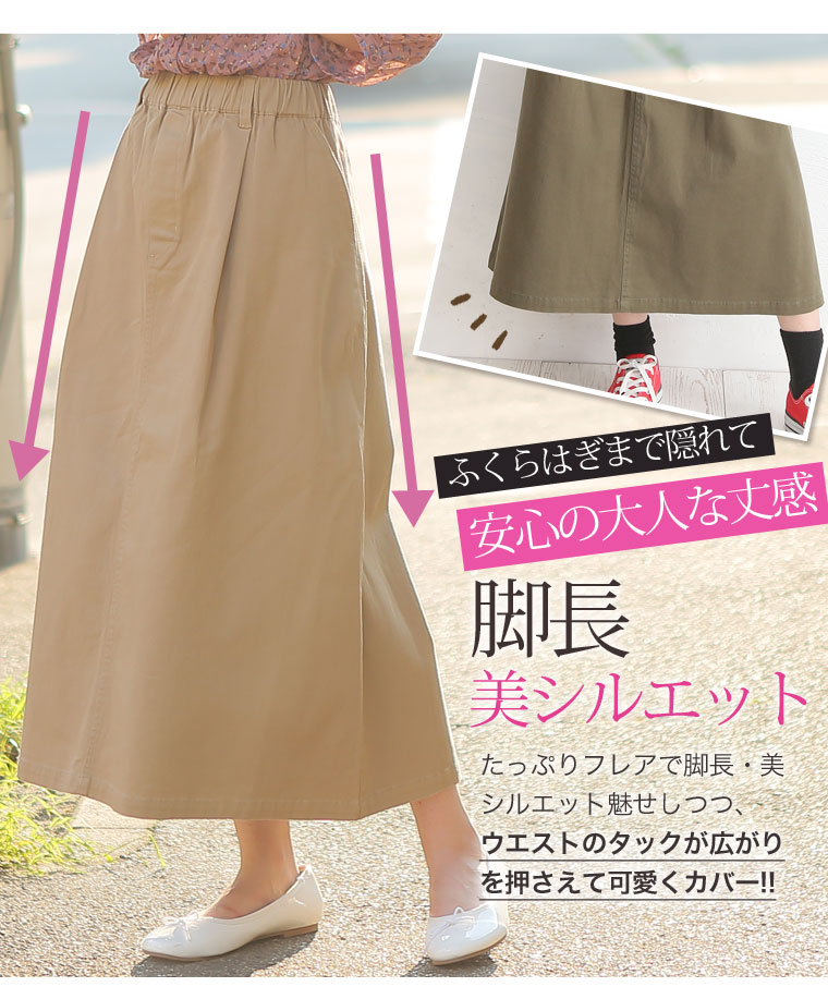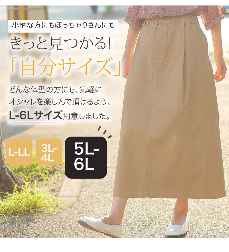 オリジナル ボトムス マキシスカート マキシ丈スカート LL 3L 4L 5L 6L 秋 秋物 秋冬 ぽっちゃり お尻 腰周り かわいい おしゃれ カジュアル チノ ストレッチ ウエスト タック マキシ スカート