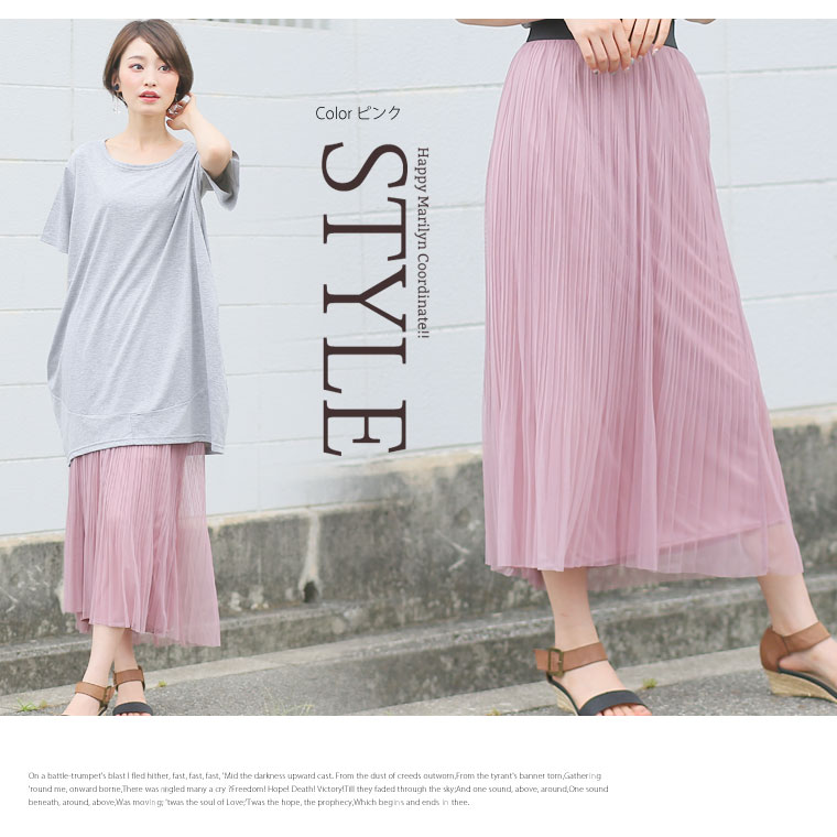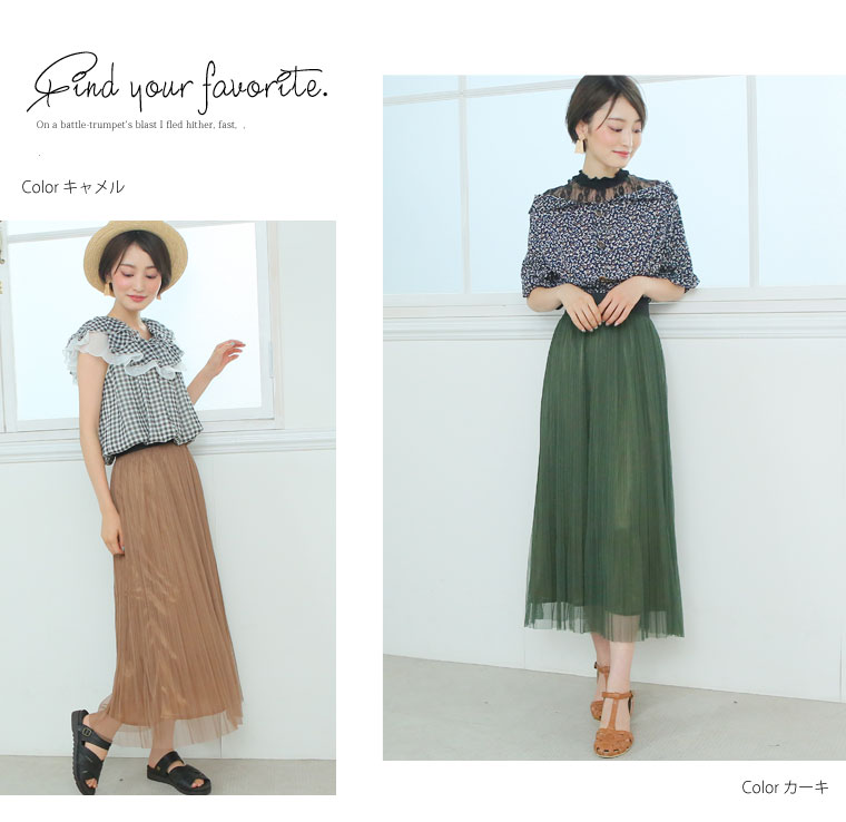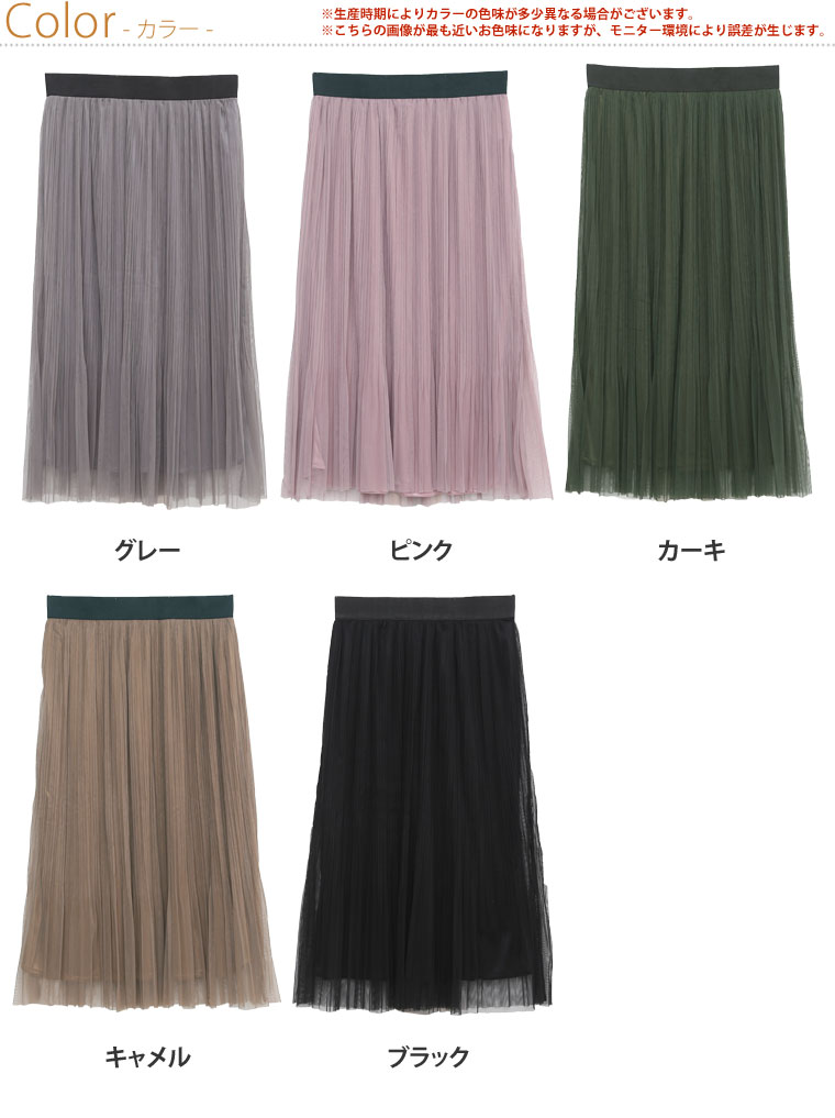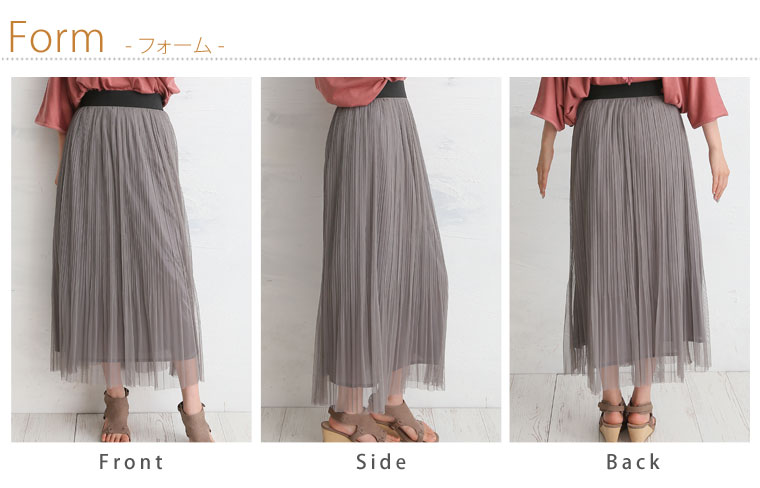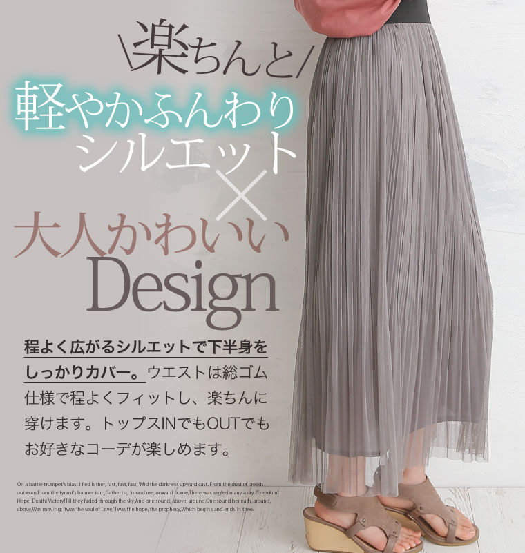 透け感のあるデザインで華やかな印象に。ウエストゴムだからストレスフリーでご使用いただけます。