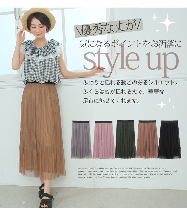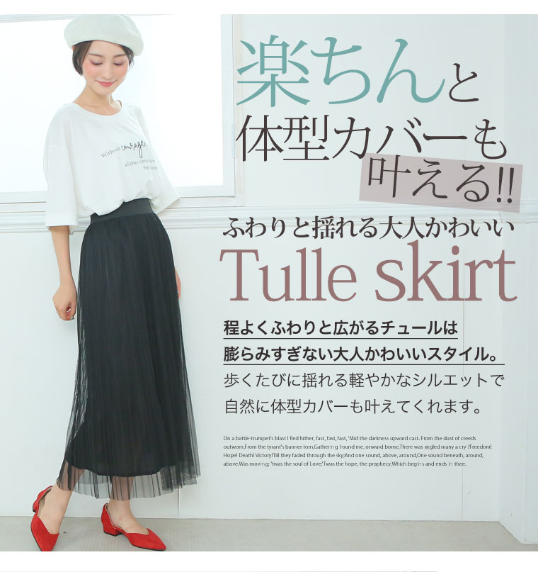 ふんわりとしたシルエットで下半身カバー◎軽やかチュールスカート