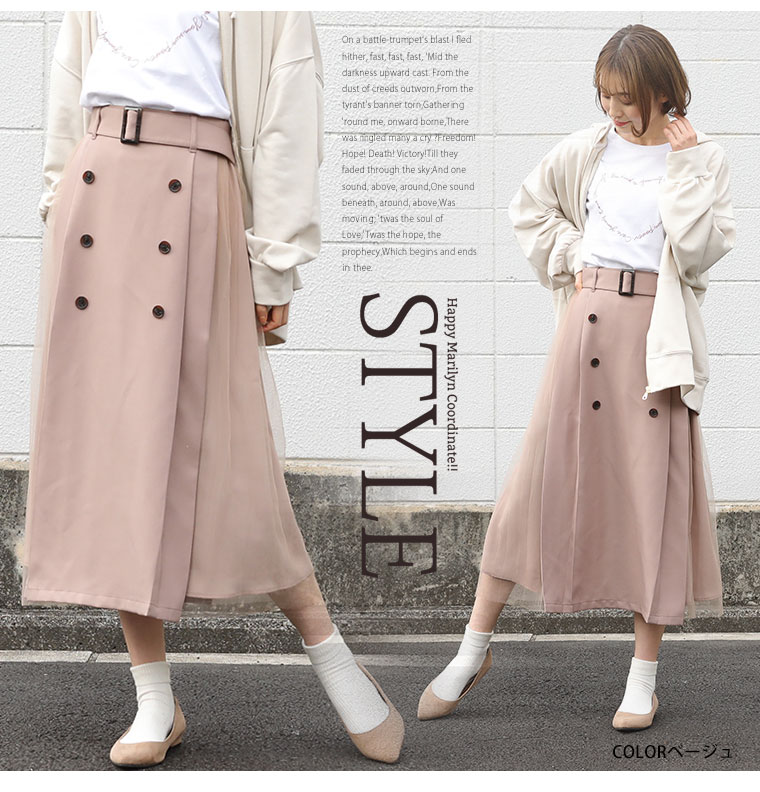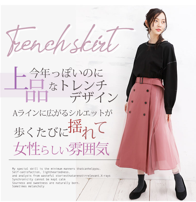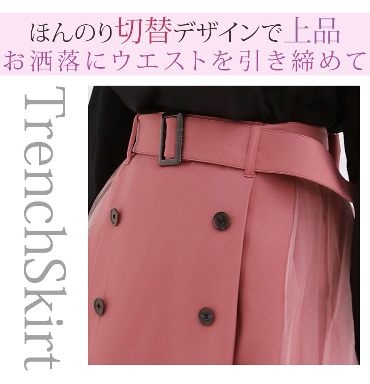 お洒落なのにスタイルアップ。ふんわりライン×トレンチデザイン×チュールのスカート
